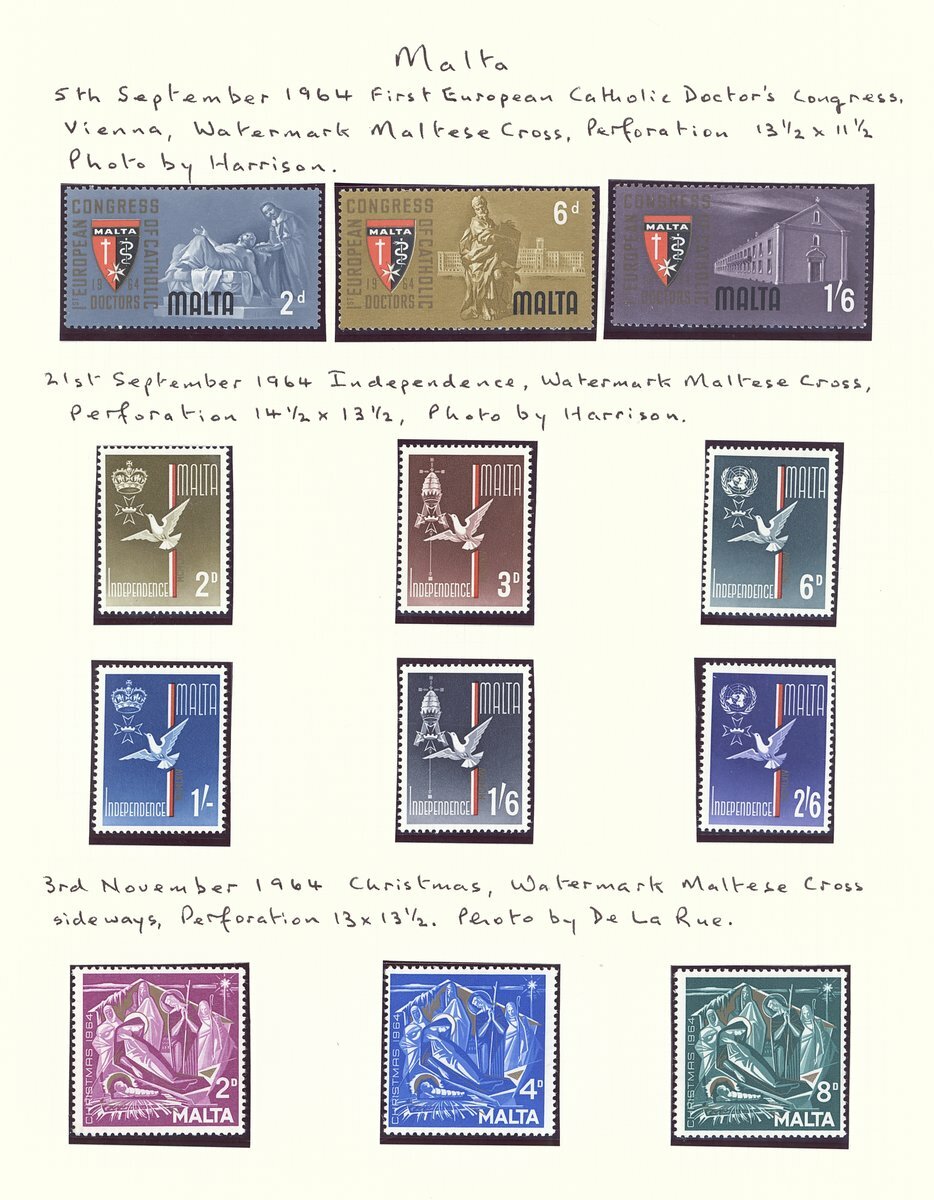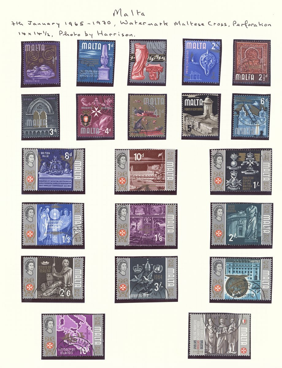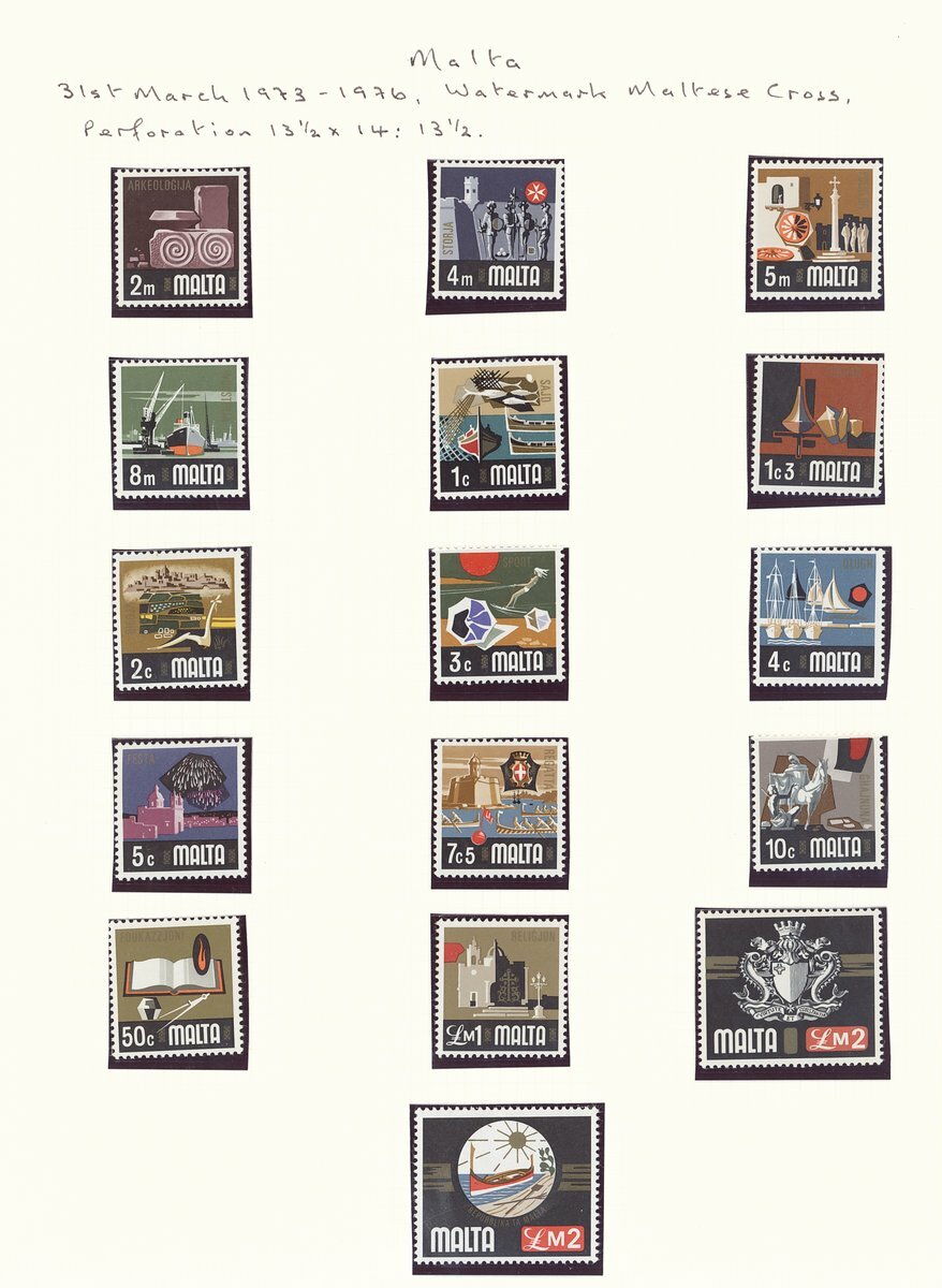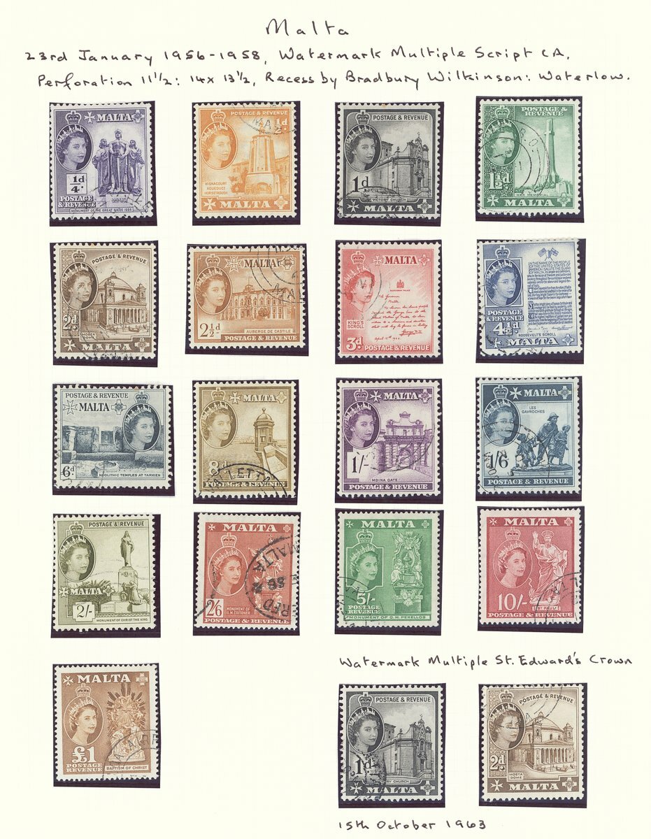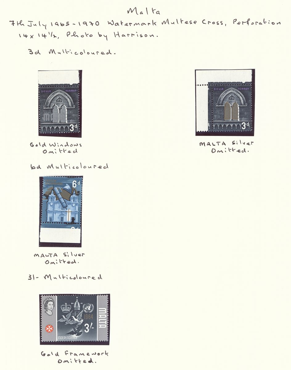 1956-76 selection of mainly mint sets and listed varieties including 1956-58 set of seventeen fine used, 1960 and 1964 sets mint, 1965-70 set of twenty-one used, 1973-76 set of nineteen, 1965-70 varieties comprising 3d. with gold windows omitted, 3d. with silver (Malta) omitted, 6d. with silver (Malta) omitted, 1/3d. imperforate vertical pair, 3/- with gold framework omitted, 5/- with gold framework omitted and 1973-76 4m. with gold omitted; chiefly fine. S.G. £970+