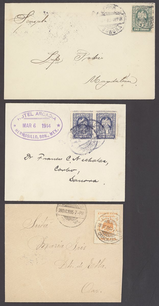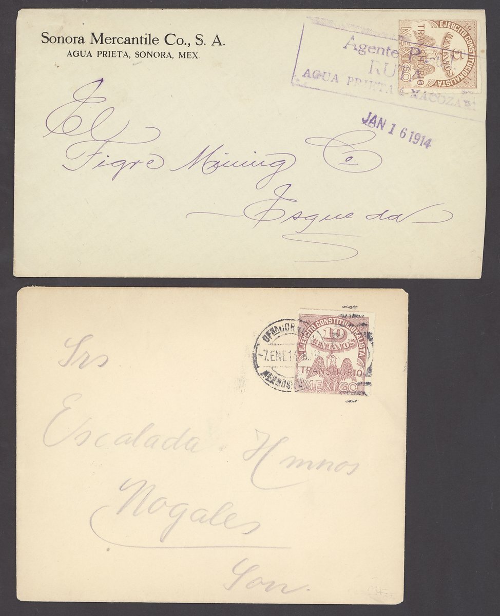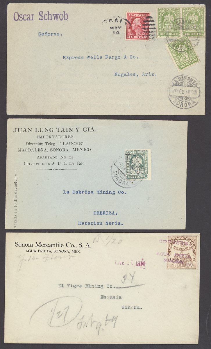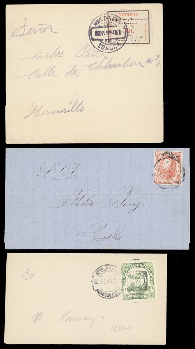 1873-1918 selection of entires or envelopes (15), including 1873 25c. on entire from Mexico City to Puebla, 1913 Sonora 10c. black with Magdalena c.d.s., 1913-24 Arms issue including mixed franking with United States 2c., etc., chiefly fine. An Interesting and colourful group