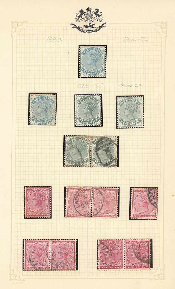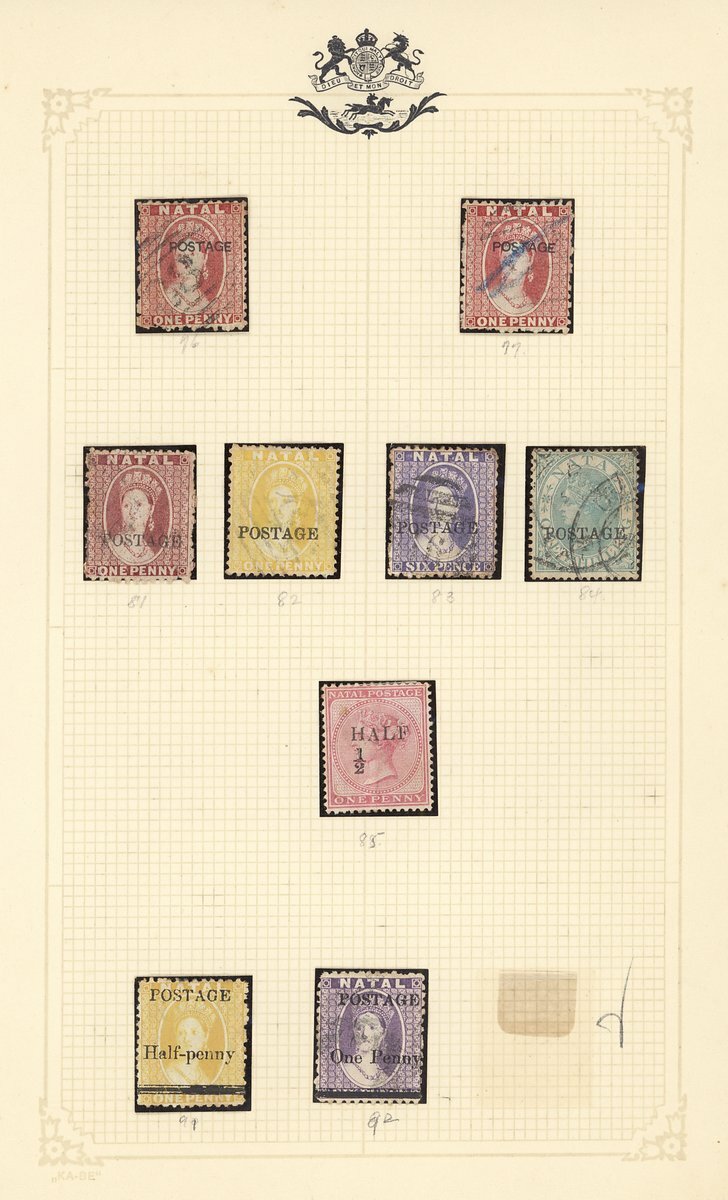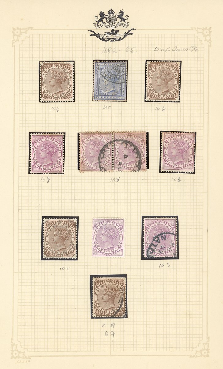 1857-1909 collection on medium size album pages including 1857 3d., some early Chalons and Postage overprints, later Q.V. to 5/-, KEVII to 10/- mint and used £1, £5 and £10 fiscally used, and a few Officials; condition mixed with viewing recommended