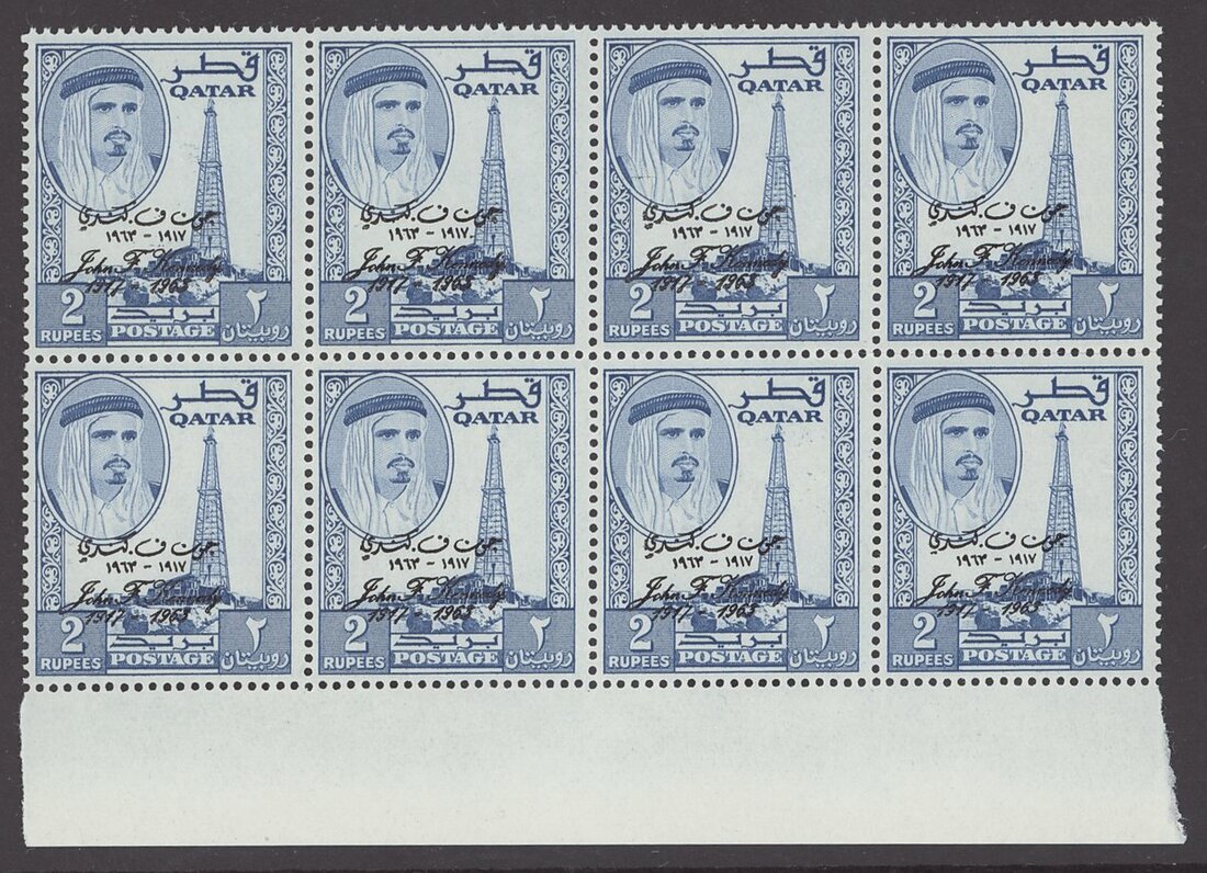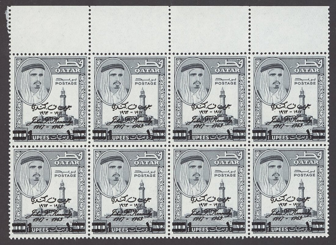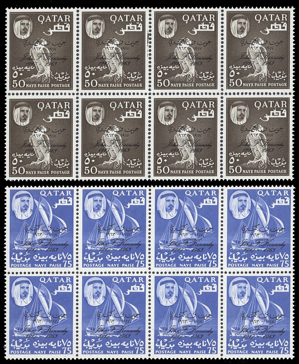 1964 set of five to 5r. in blocks of eight, the Rupee values marginal, the 2r. and 5r. with minor perf. splitting; unmounted mint. S.G. 43-47, £400
