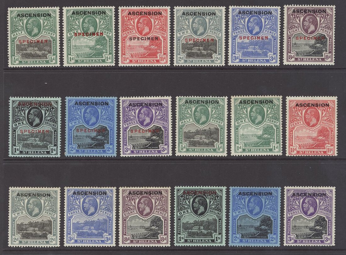 1922 ½d. to 3/-, two sets of nine, a set with large part original gum and a second set overprinted