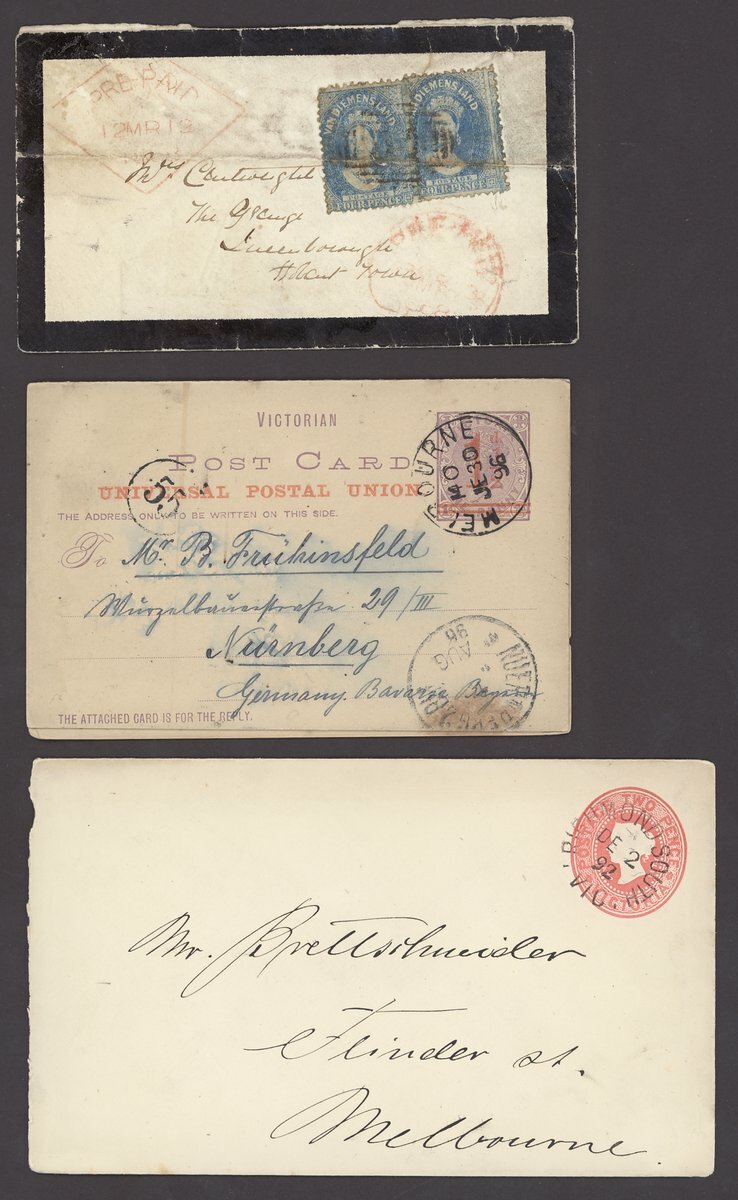 Postal History collection including postal stationery, covers and cards with 1901 front of cover to Teheran bearing ½d green (15, block of ten and strip of five), 1906 postcard to Hong Kong, also a couple of covers from other States, mixed condition (66)