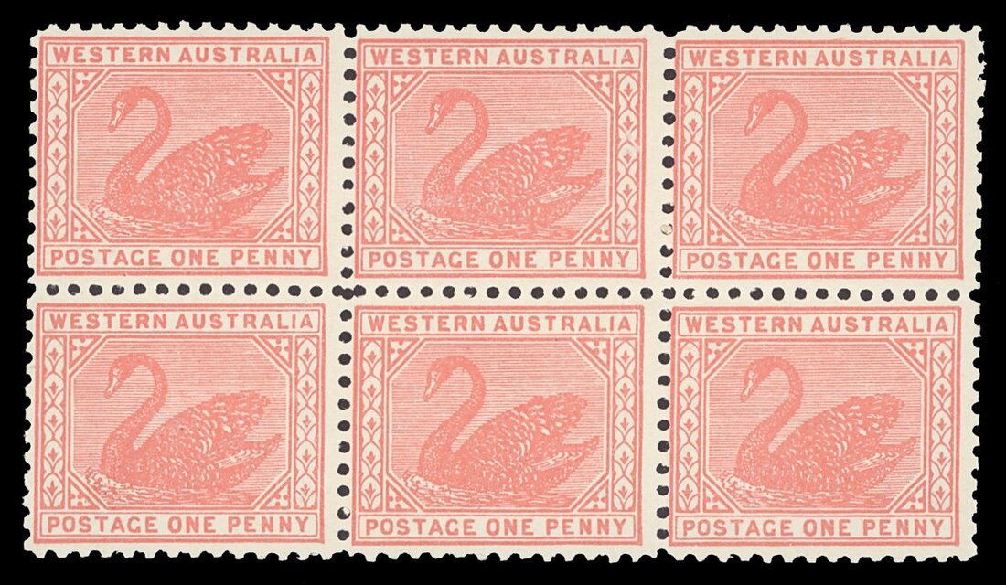 1905-12 Watermark Crown over double-lined A, perf 11 1d. rose-pink block of six (3x2), fresh mint with four unmounted. S.G. 151, £300