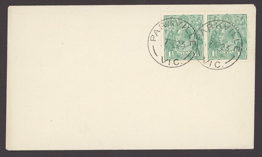 1923 KGV 1½d. green pair on plain envelope cancelled by