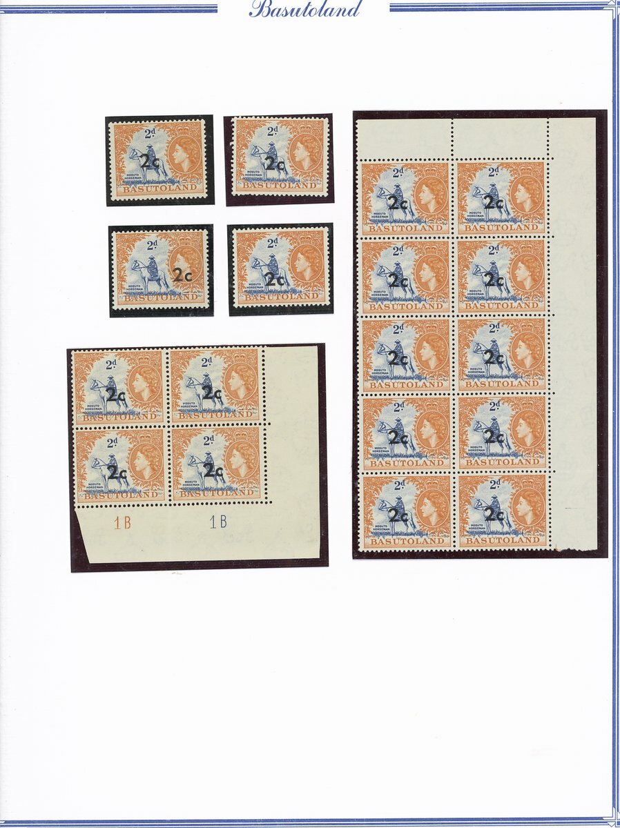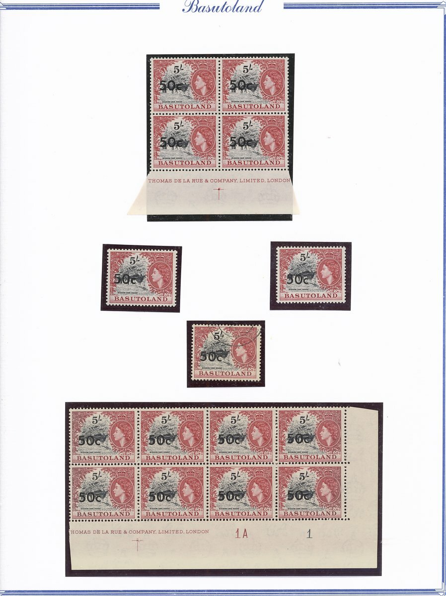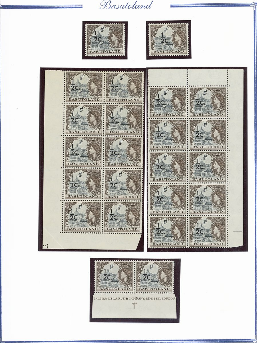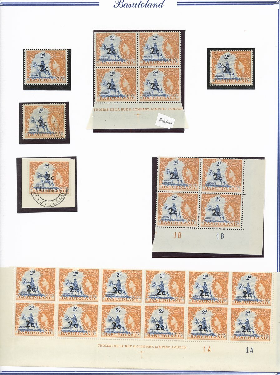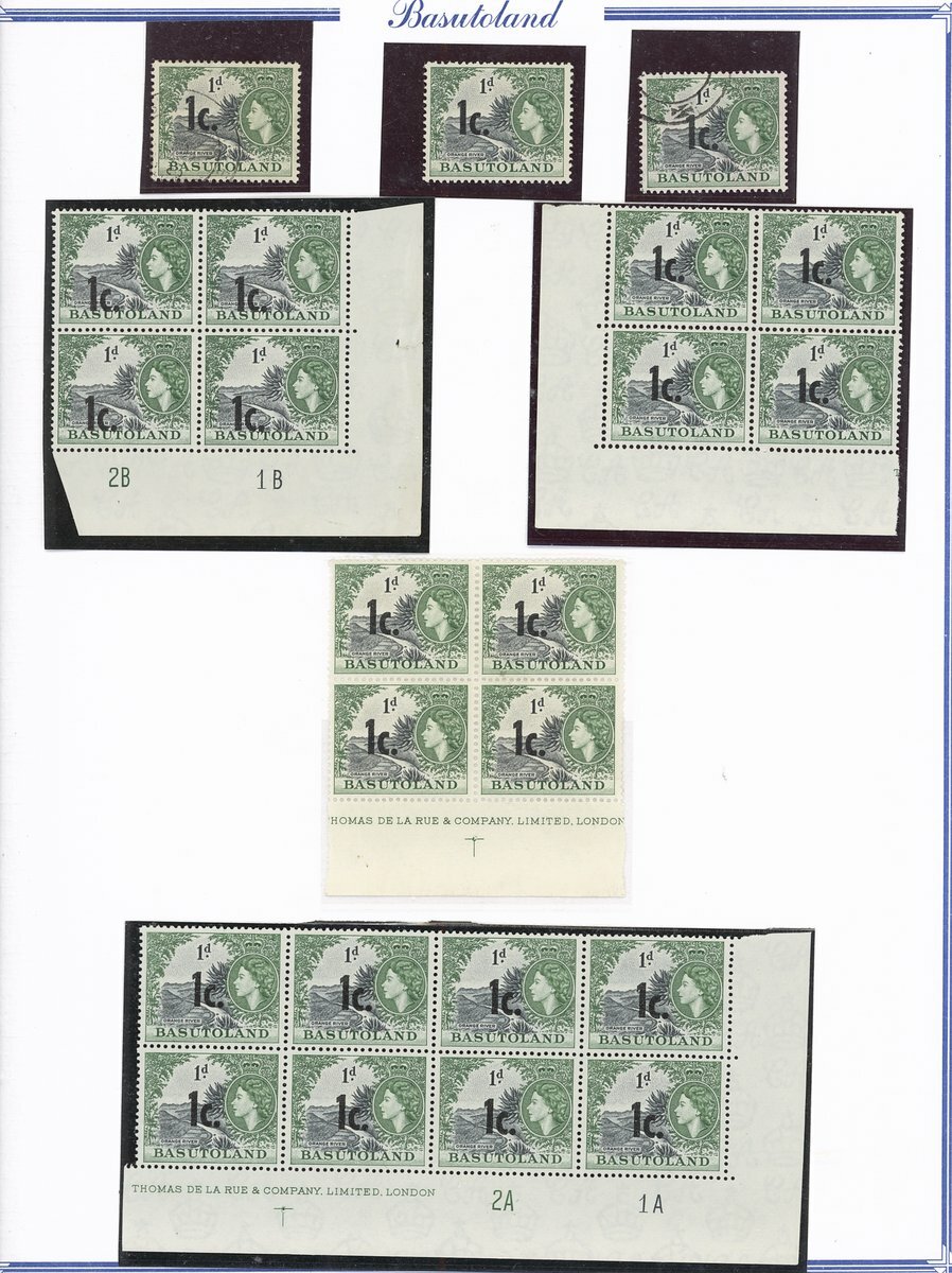 A collection comprising ½c. on ½d. (177 with 2A and 2B sheets), 1c. on 1d. (221 with 2A (2) and 2B sheets), 2c. on 2d. (99 with 1B sheet), 2½c. on 3d. Types I (22) and II (96 with both central and higher to left surcharges), 3½c. on 4½d. Types I (48) and II (5), 5c. on 6d. Types I (109 with 2B sheet) and II (27), 10c. on 1/- Types (55) and II, 12½c. on 1/- Types I (35) and II (57), 25c. on 2/6d. Types I (19), II (5) and III (34), 50c. on 5/- Types I (14) and II (44) and 1r., on 10/- Types I (7), II (6) and III (33), largely in blocks between four and eighteen, mostly with imprint and/or plate numbers, a few shades and minor positional varieties, fine unmounted mint, and a small selection of used (35) to 1r. with all values values represented Also 1959 ½d. on 2d. unmounted mint (142 with 1A and 1B sheets) and used (5). Cat. £5,000+