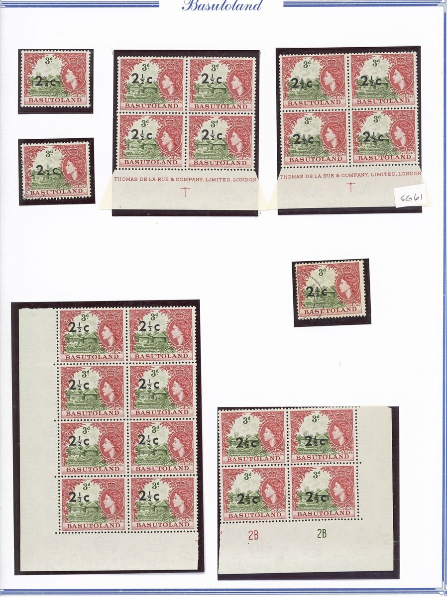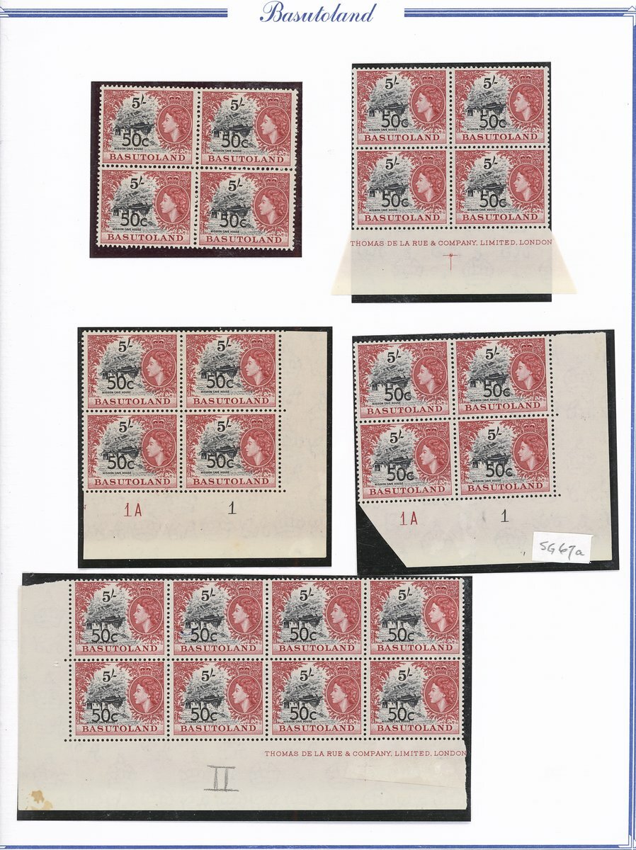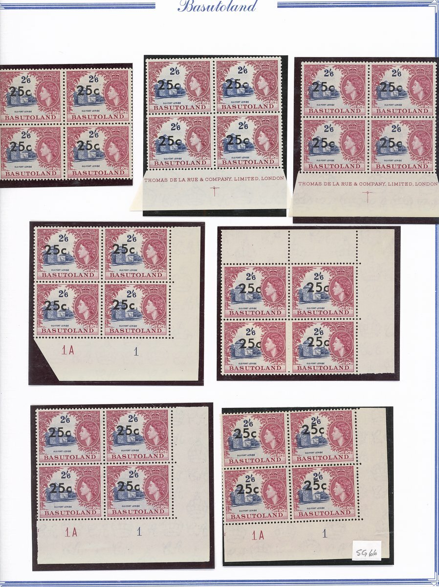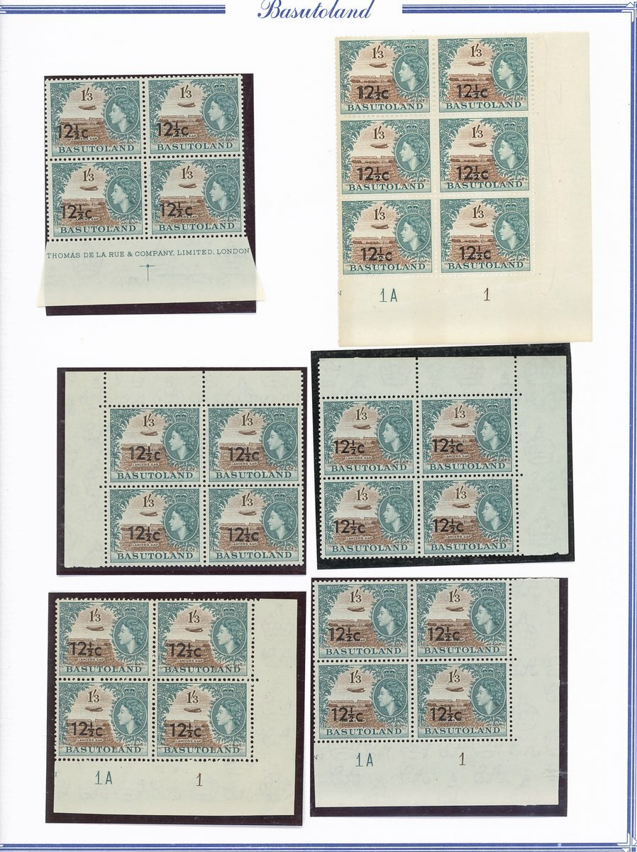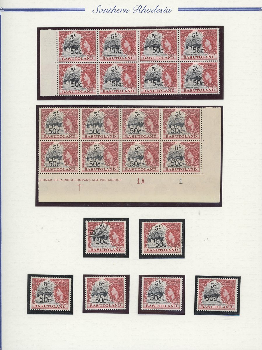 A collection comprising ½c. on ½d. (177 with 2A and 2B sheets), 1c. on 1d. (221 with 2A (2) and 2B sheets), 2c. on 2d. (99 with 1B sheet), 2½c. on 3d. Types I (22) and II (96 with both central and higher to left surcharges), 3½c. on 4½d. Types I (48) and II (5), 5c. on 6d. Types I (109 with 2B sheet) and II (27), 10c. on 1/- Types (55) and II, 12½c. on 1/- Types I (35) and II (57), 25c. on 2/6d. Types I (19), II (5) and III (34), 50c. on 5/- Types I (14) and II (44) and 1r., on 10/- Types I (7), II (6) and III (33), largely in blocks between four and eighteen, mostly with imprint and/or plate numbers, a few shades and minor positional varieties, fine unmounted mint, and a small selection of used (35) to 1r. with all values values represented Also 1959 ½d. on 2d. unmounted mint (142 with 1A and 1B sheets) and used (5). Cat. £5,000+