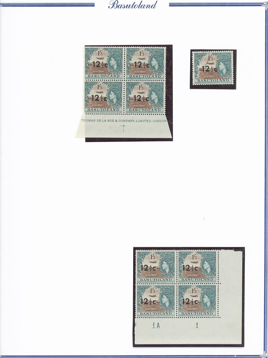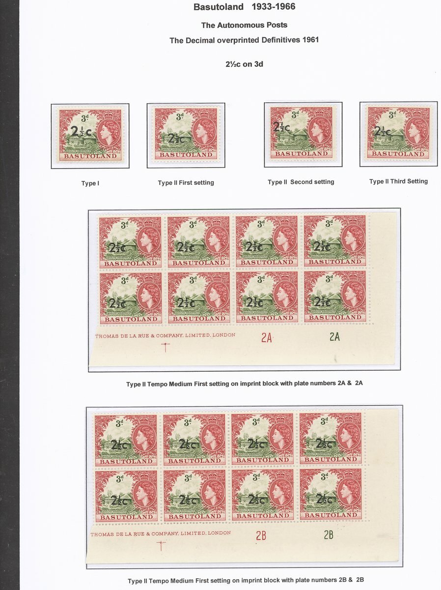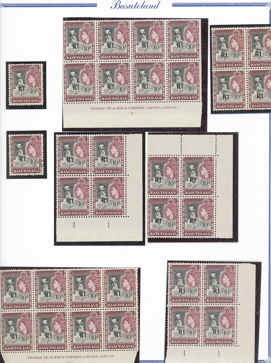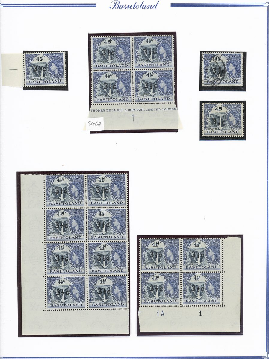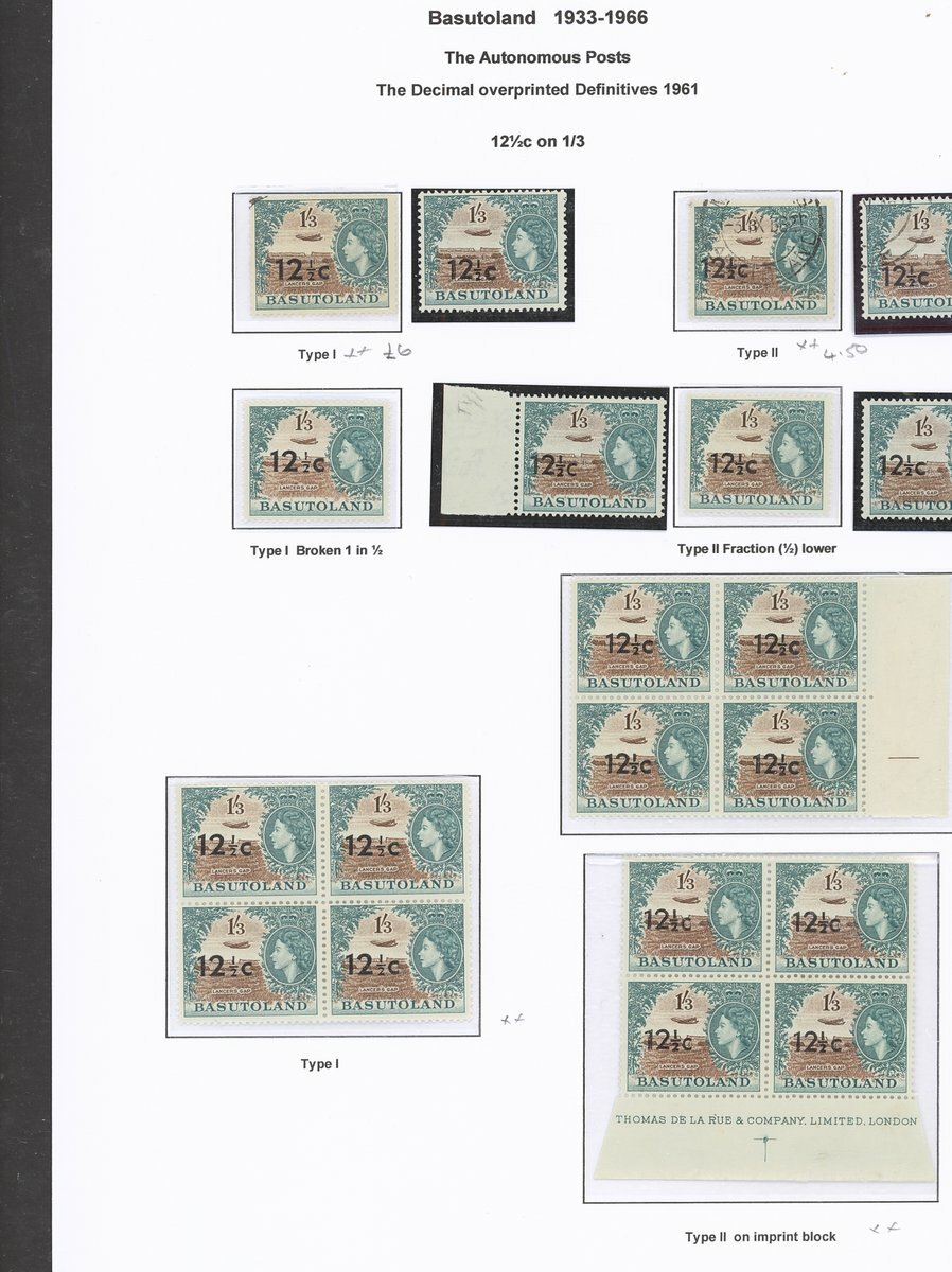 A collection comprising ½c. on ½d. (177 with 2A and 2B sheets), 1c. on 1d. (221 with 2A (2) and 2B sheets), 2c. on 2d. (99 with 1B sheet), 2½c. on 3d. Types I (22) and II (96 with both central and higher to left surcharges), 3½c. on 4½d. Types I (48) and II (5), 5c. on 6d. Types I (109 with 2B sheet) and II (27), 10c. on 1/- Types (55) and II, 12½c. on 1/- Types I (35) and II (57), 25c. on 2/6d. Types I (19), II (5) and III (34), 50c. on 5/- Types I (14) and II (44) and 1r., on 10/- Types I (7), II (6) and III (33), largely in blocks between four and eighteen, mostly with imprint and/or plate numbers, a few shades and minor positional varieties, fine unmounted mint, and a small selection of used (35) to 1r. with all values values represented Also 1959 ½d. on 2d. unmounted mint (142 with 1A and 1B sheets) and used (5). Cat. £5,000+