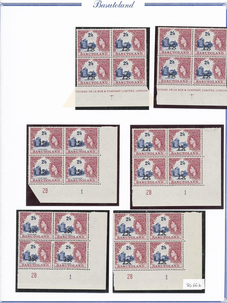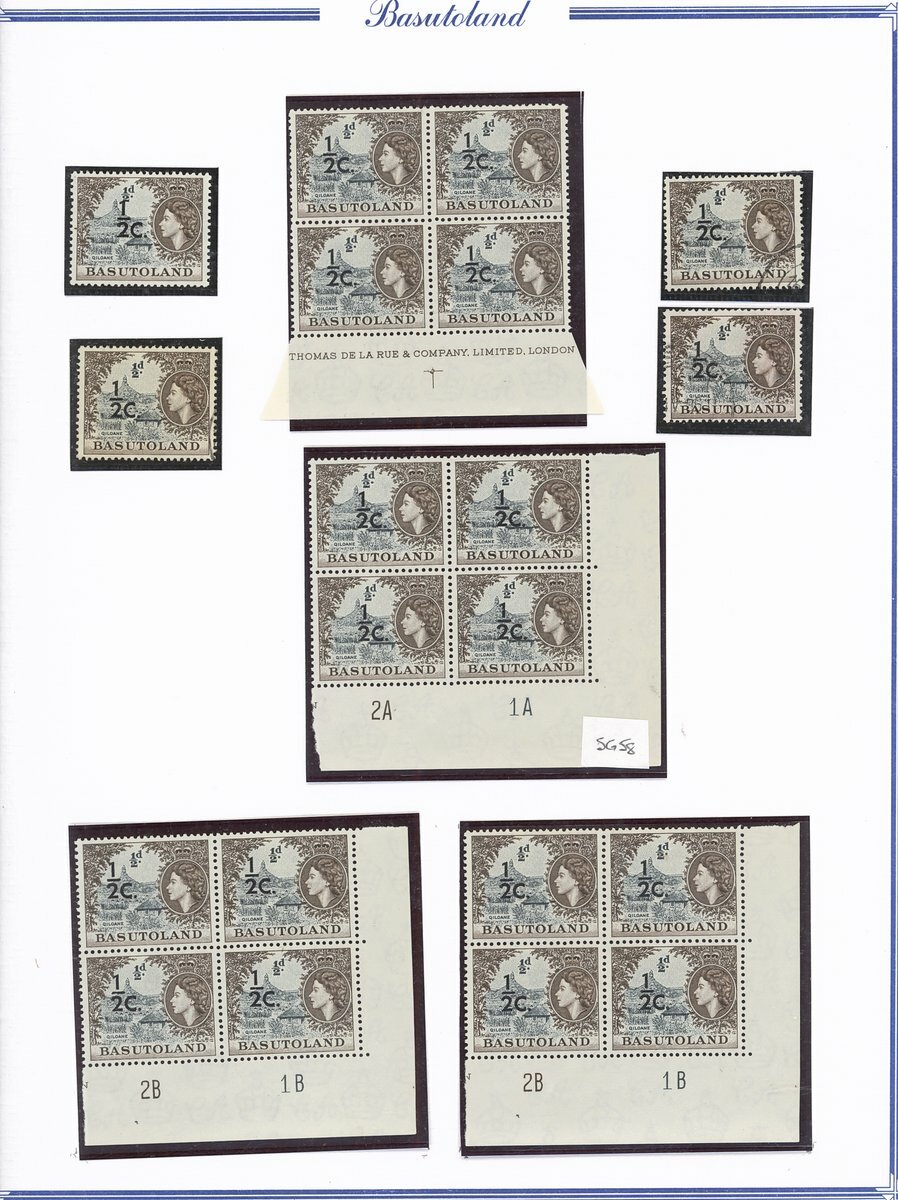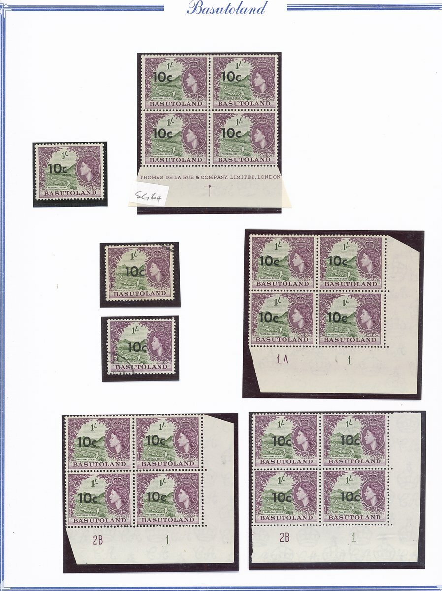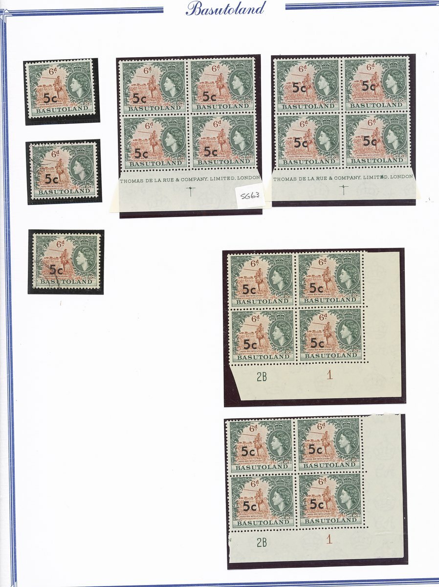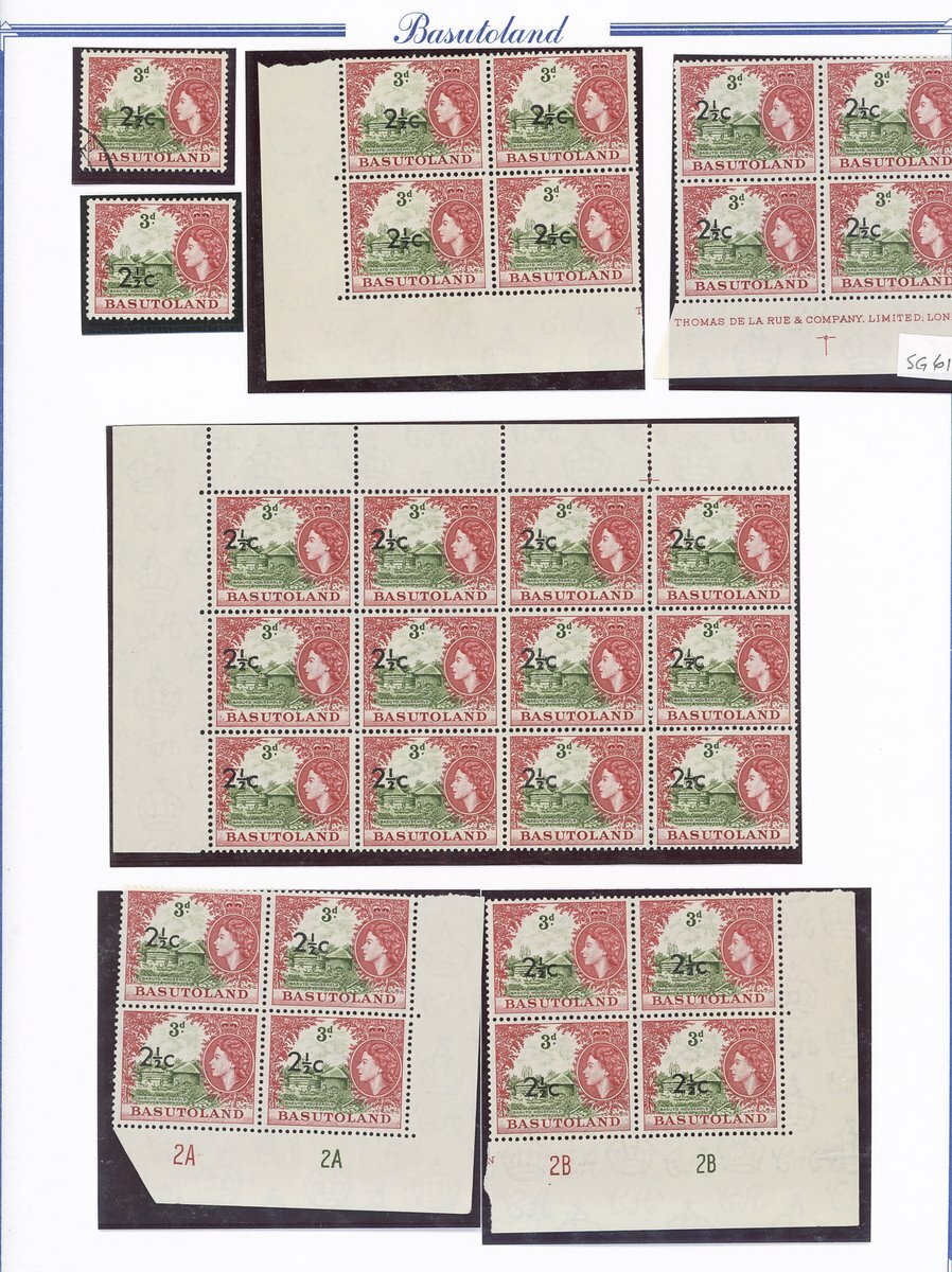 A collection comprising ½c. on ½d. (177 with 2A and 2B sheets), 1c. on 1d. (221 with 2A (2) and 2B sheets), 2c. on 2d. (99 with 1B sheet), 2½c. on 3d. Types I (22) and II (96 with both central and higher to left surcharges), 3½c. on 4½d. Types I (48) and II (5), 5c. on 6d. Types I (109 with 2B sheet) and II (27), 10c. on 1/- Types (55) and II, 12½c. on 1/- Types I (35) and II (57), 25c. on 2/6d. Types I (19), II (5) and III (34), 50c. on 5/- Types I (14) and II (44) and 1r., on 10/- Types I (7), II (6) and III (33), largely in blocks between four and eighteen, mostly with imprint and/or plate numbers, a few shades and minor positional varieties, fine unmounted mint, and a small selection of used (35) to 1r. with all values values represented Also 1959 ½d. on 2d. unmounted mint (142 with 1A and 1B sheets) and used (5). Cat. £5,000+