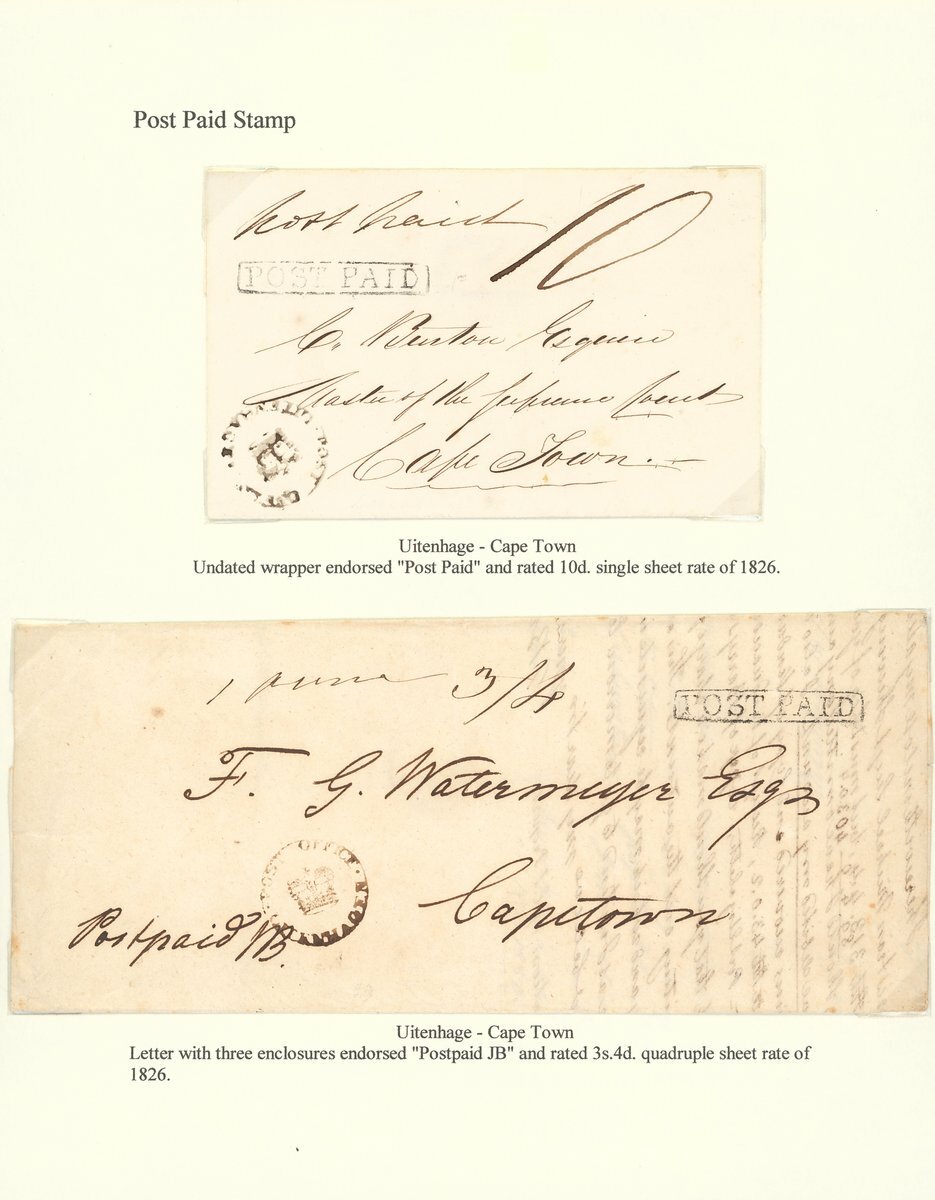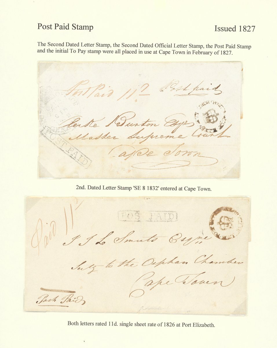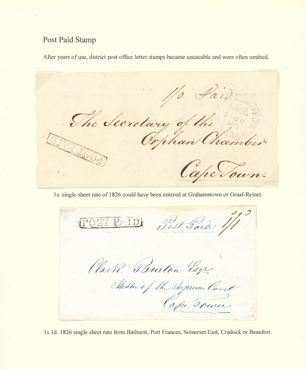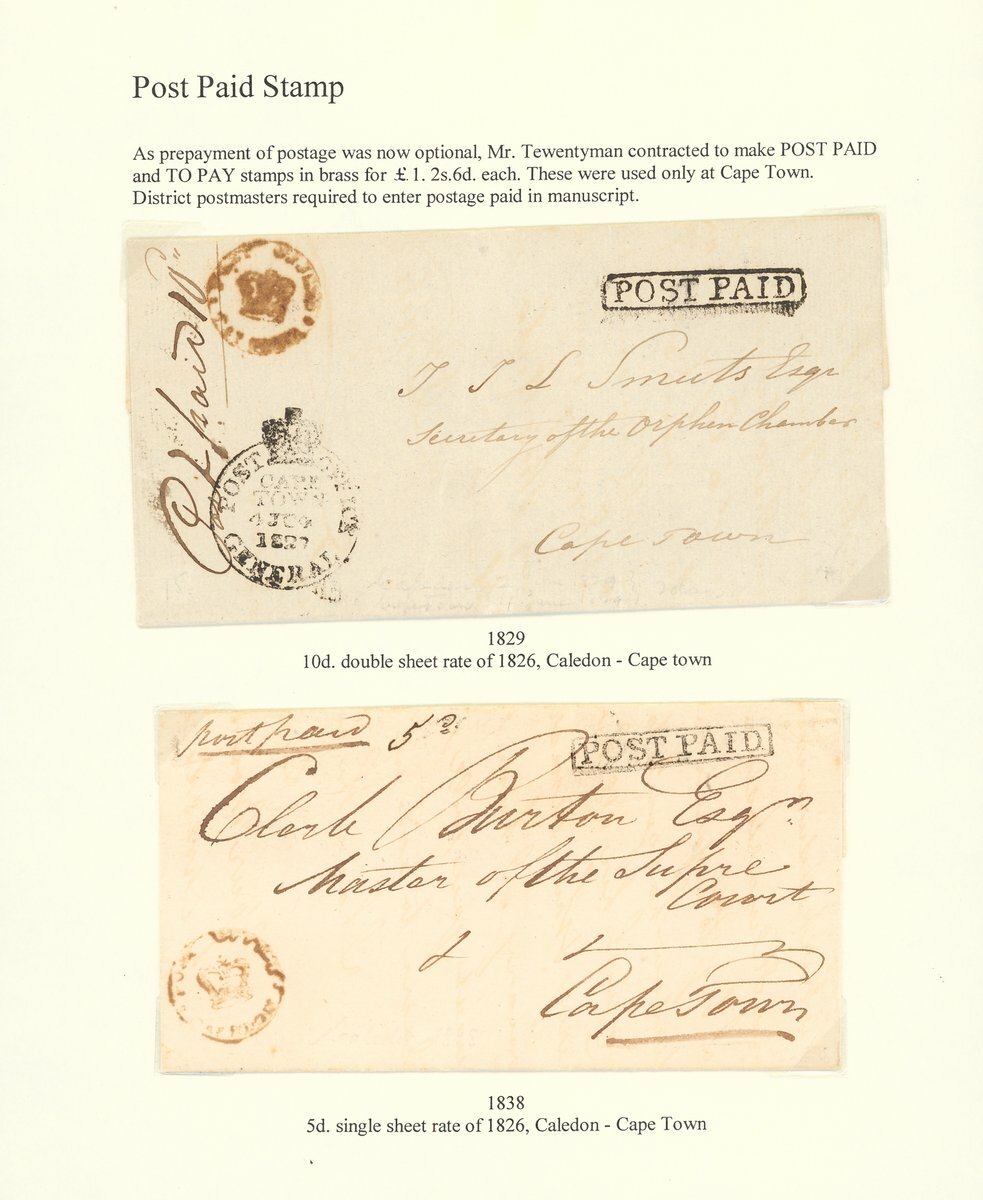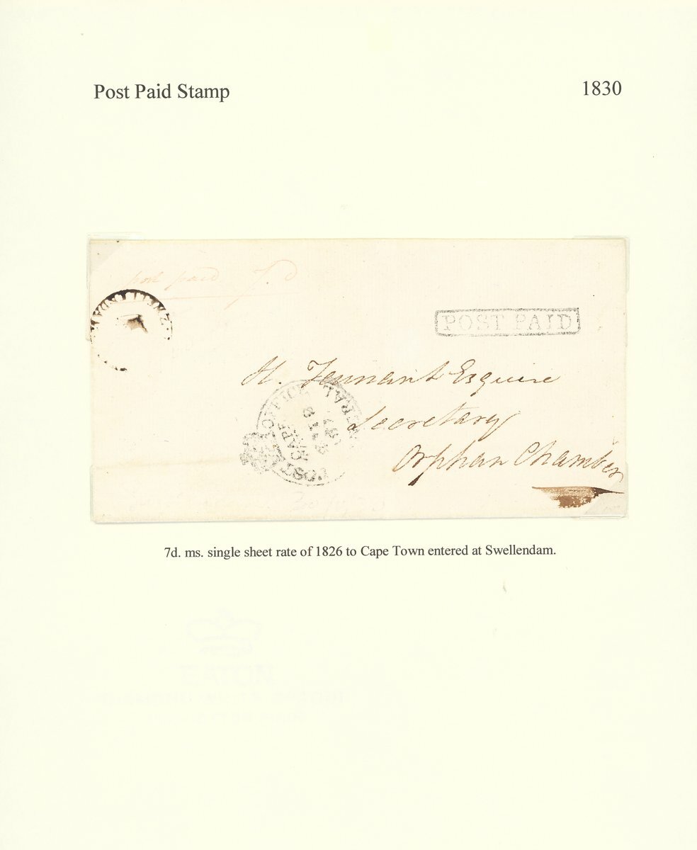 1829-36 entires (9) from Bathurst, Caledon (2), Port Elizabeth (2), Swellendam, Uitenhage (2) and one other to Cape Town, variously rated and each showing framed