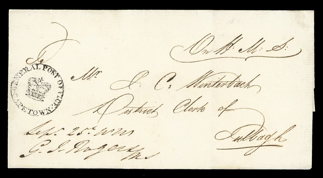 Undated entires (2), one to Cape Town rated "4"(sk.), the other to Tulbagh and headed "On HMS", both showing very fine circular