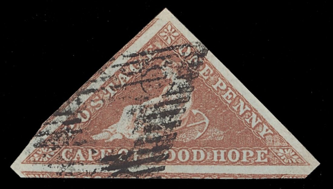 1d. deep brick-red with watermark sideways, large margins with portion of adjoining stamp at foot, clearly cancelled, fine. S.G. 1a/b, £500. Photo