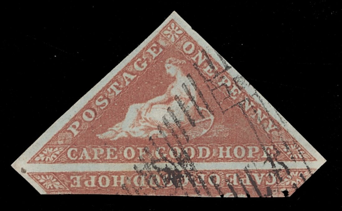 1d. brick-red with large margins and showing large portion of adjoining stamp at foot, neatly cancelled, fine. A splendid example. S.G. 3, £350. Photo