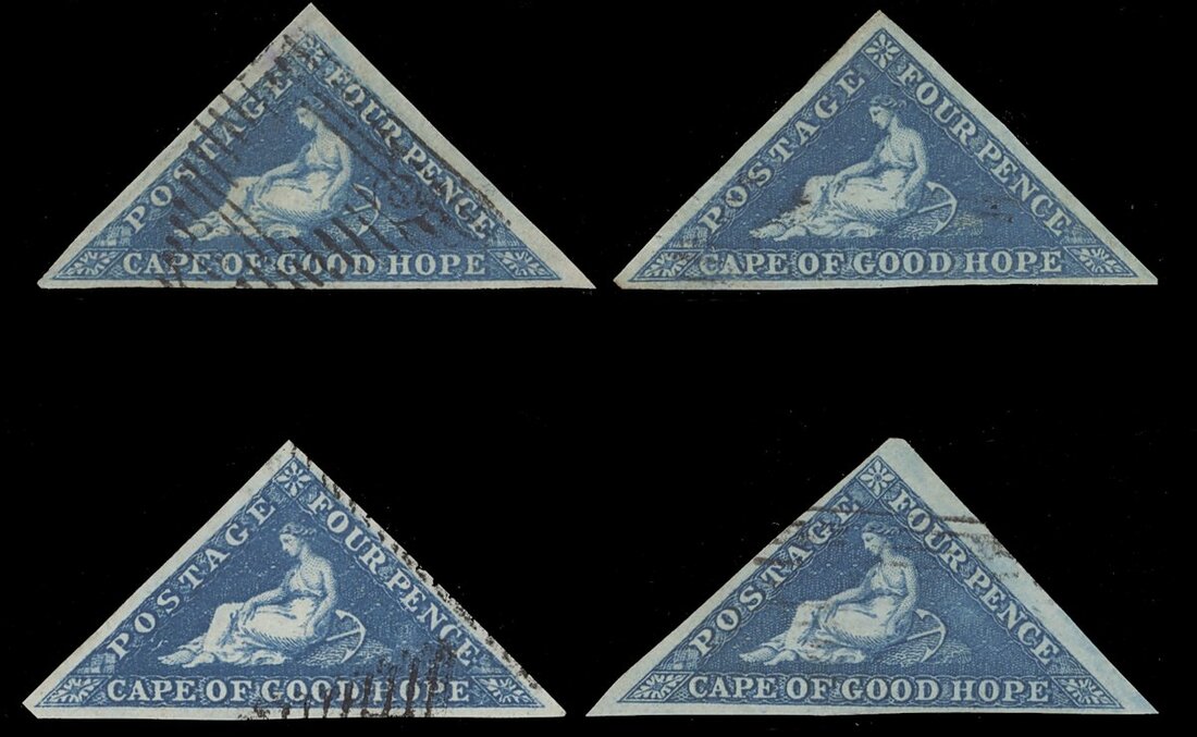 4d. blue (4, shades) with good margins, fine used. S.G. 4a, £800