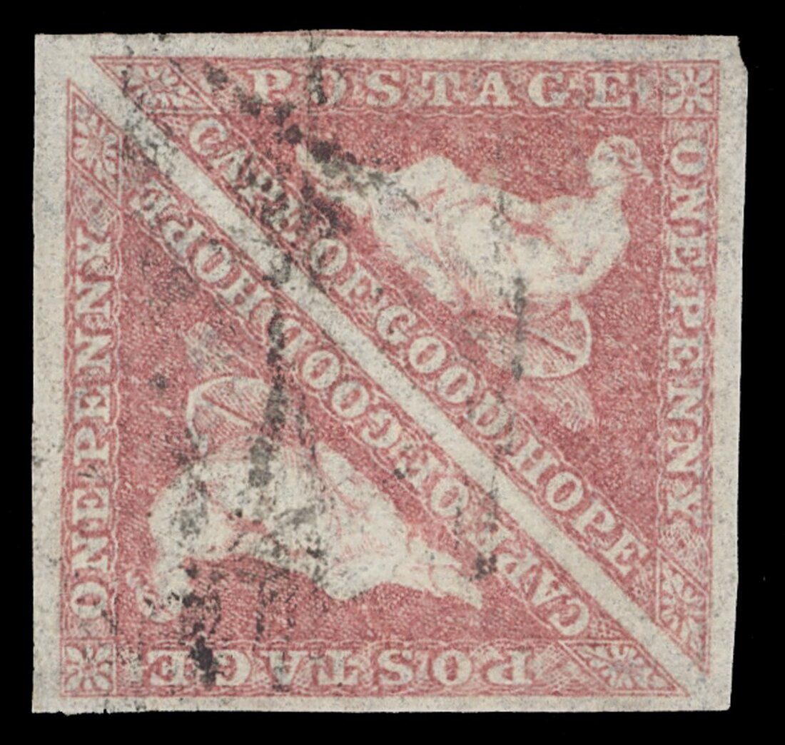 1d. rose pair, a pale shade with good to large margins, lightly cancelled, fine. S.G. 5a, £600. Photo