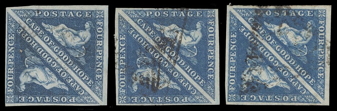 4d. blue, three pairs, one in a deep shade showing vertical line in first
