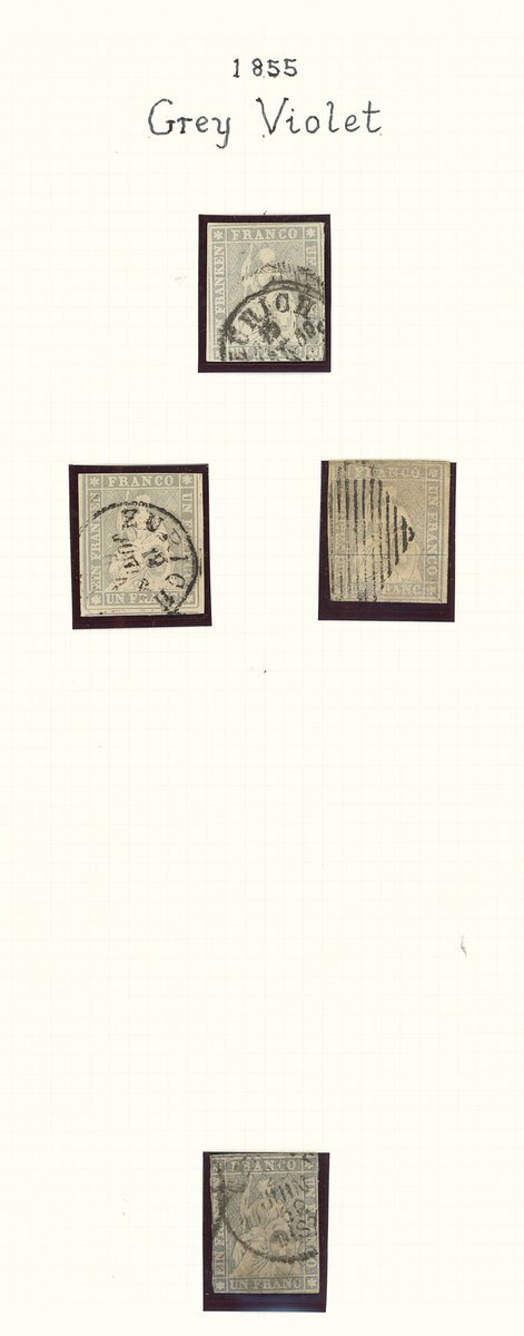 1f. grey-violet, three good used examples, one with Federal grid, the others with Zurich c.d.s., fair to good. Also a defective example Zumstein 27C