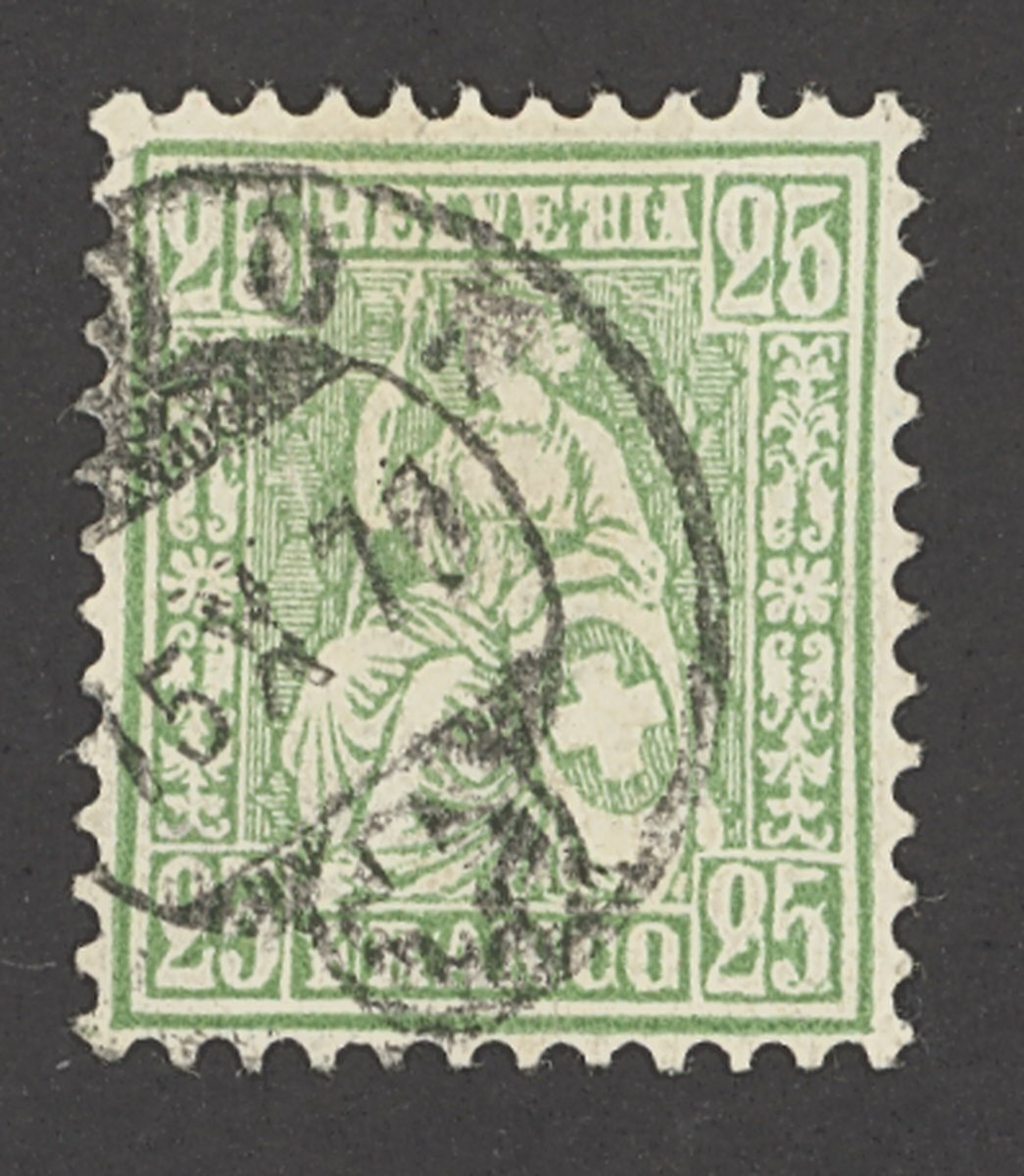 25c. yellow-green, double impression, one inverted; fine used, scarce. S.G. 64x, £1,400