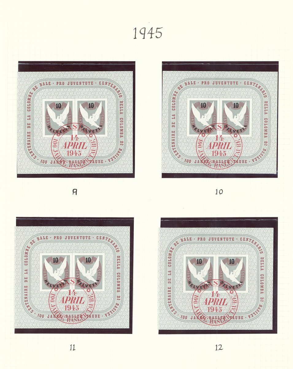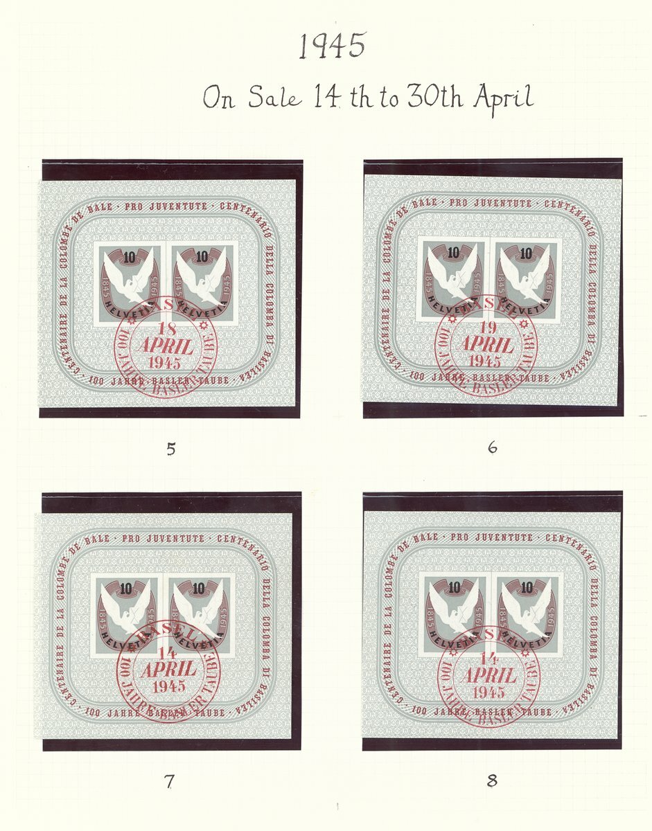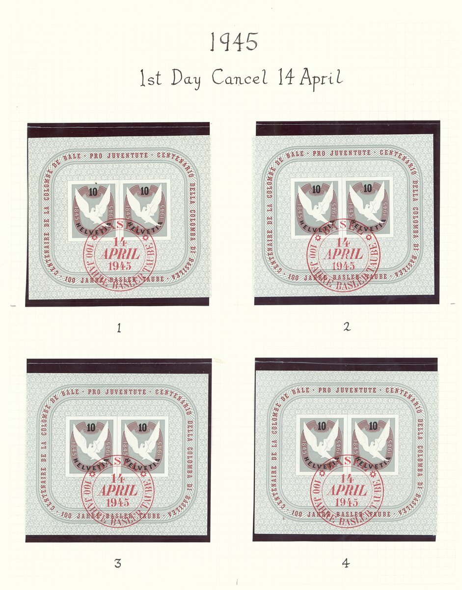 1945 Basel, the set of Plate numbers 1-12, neatly cancelled by special first day postmarks; fine. S.G. MS446b