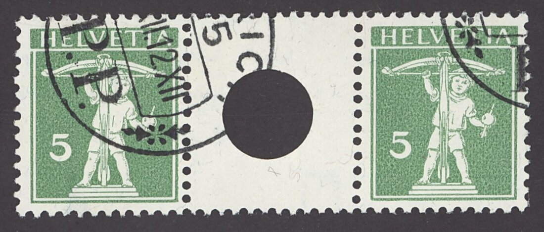 1908-13 Tell's son 5c. green type II, used, fine (thinned perf. tip?) and rare. Loertscher Certificate (2018). Zumstein S7II, 2,250 Sw. Frs.