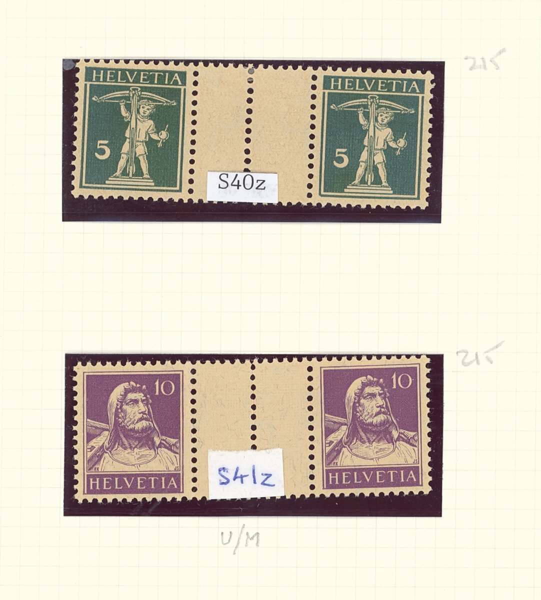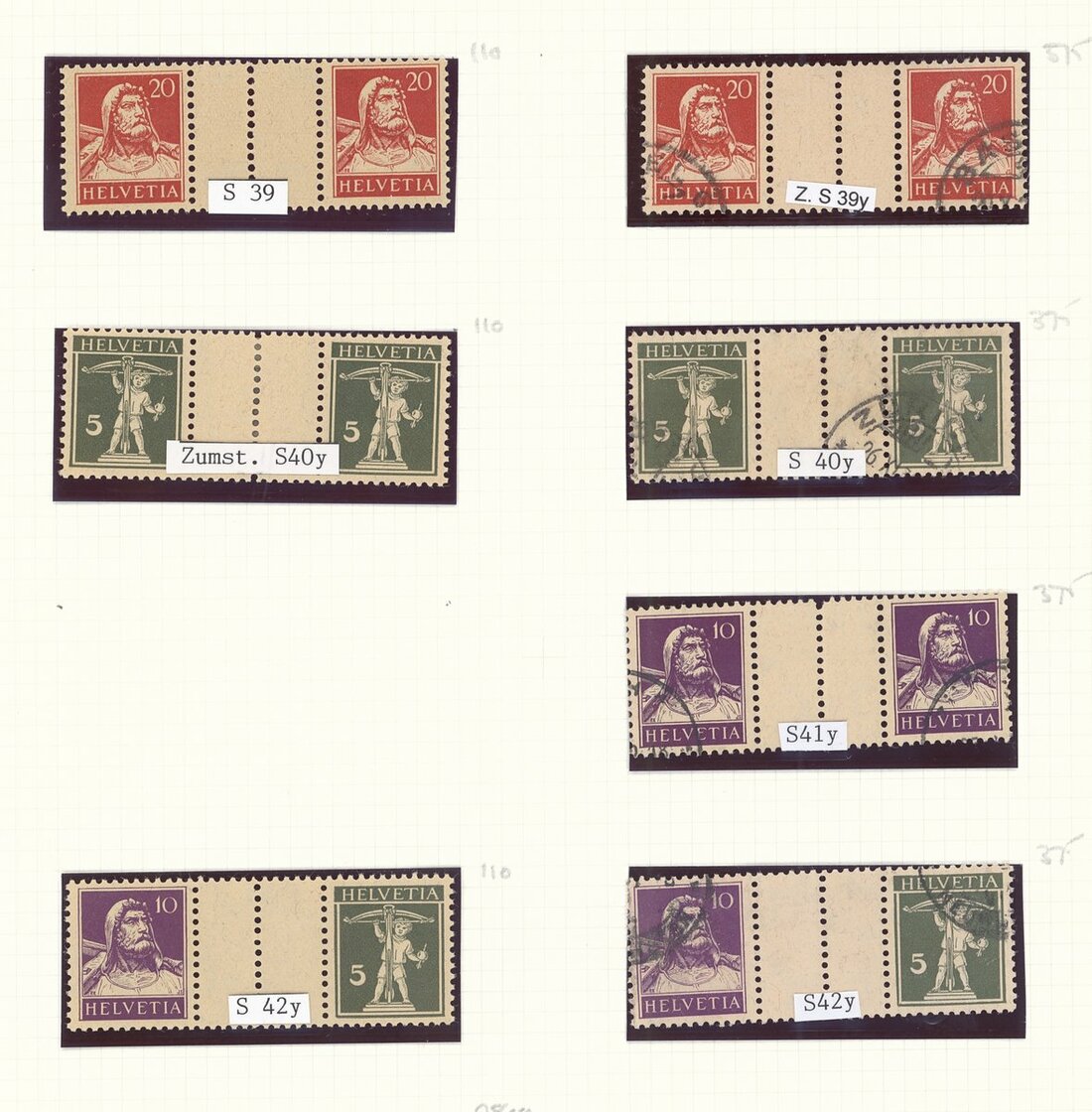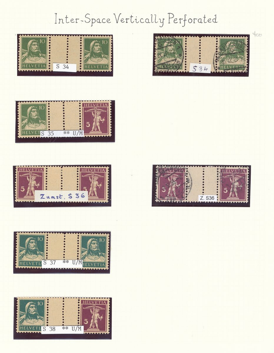 Collection (16 items) on pages, including Zumstein S34-35, S39, S40, S40z, S41z, S42 mint or original gum. Zumstein S34, S39-42 used, chiefly fine