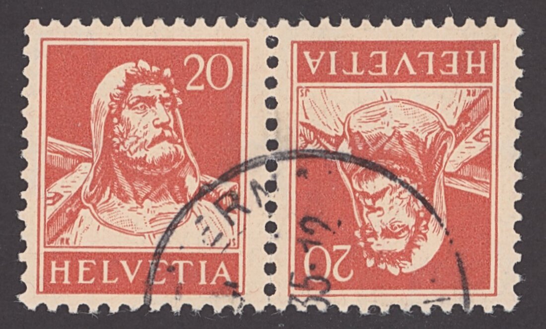 1914-33 grilled gum 20c. scarlet on buff, fine used (folded between). Rare. Marchand Certificate (2018), S.G. 289ba, £3,250. Zumstein K25z.