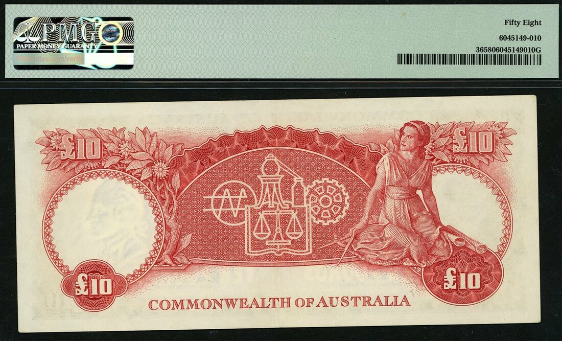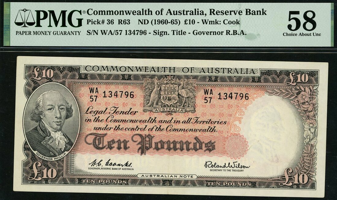 (x) Reserve Bank of Australia, £10, ND (1960-65), serial number WA/57 134796, (Pick 36, TBB B204, Renniks R63), in PMG holder 58 Choice About Unc