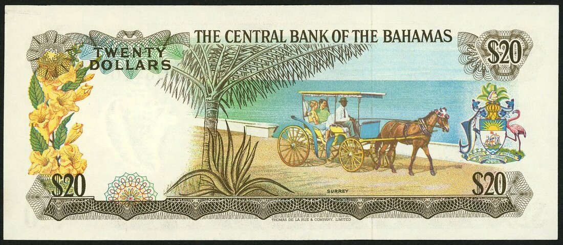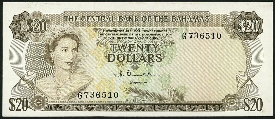 Central Bank of The Bahamas, $20, 1974, serial number G736510, signature Donaldson,