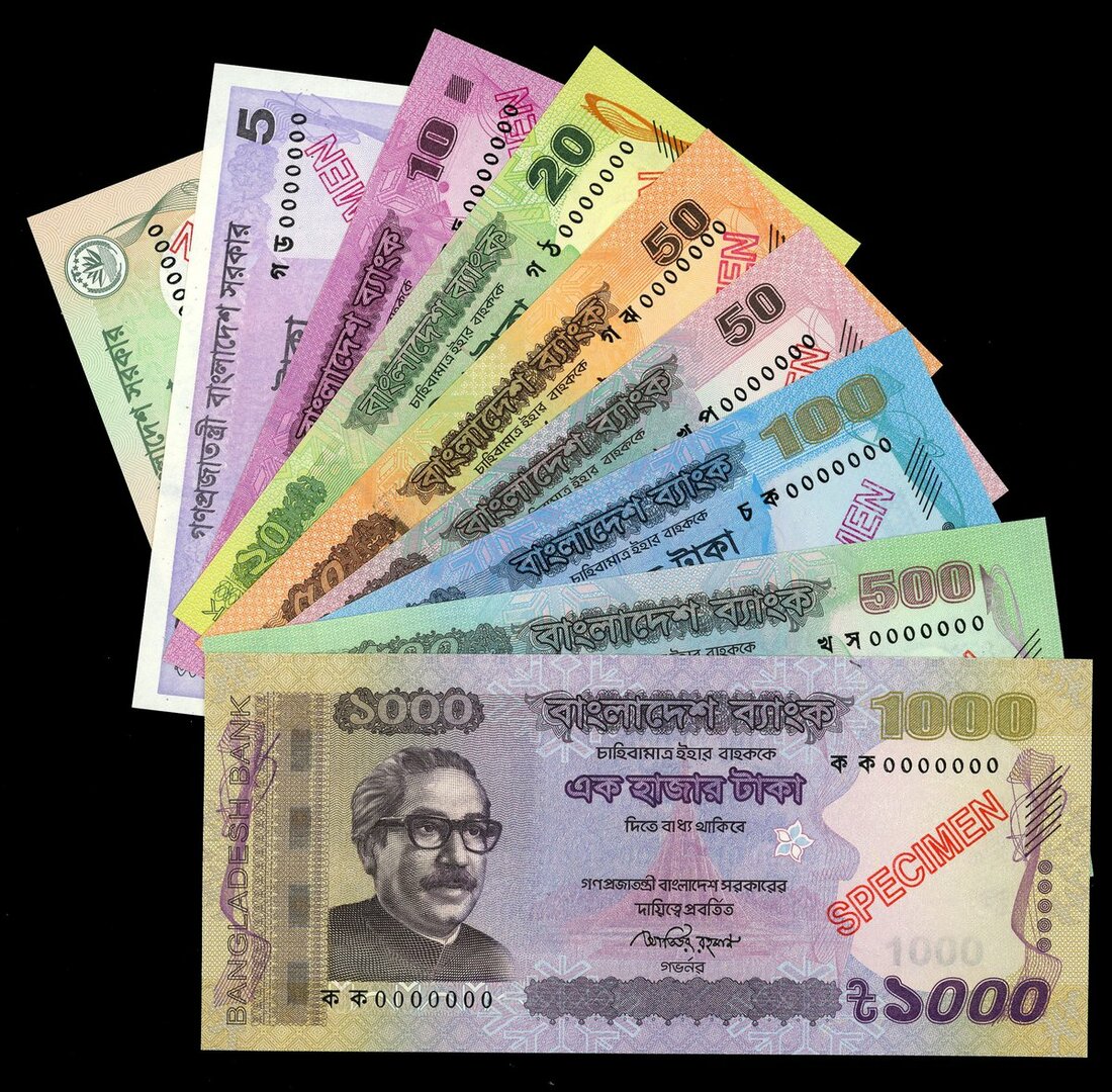 (x) Bangladesh Bank, a group of specimens from 2014-19, including 2, 5, 10, 20, 50 (2), 100, 500 and 1000 taka, v (Pick 52s, 64As, 54s, 55As, 56s, 57s, 58s, 59s), all with red specimen overprints,