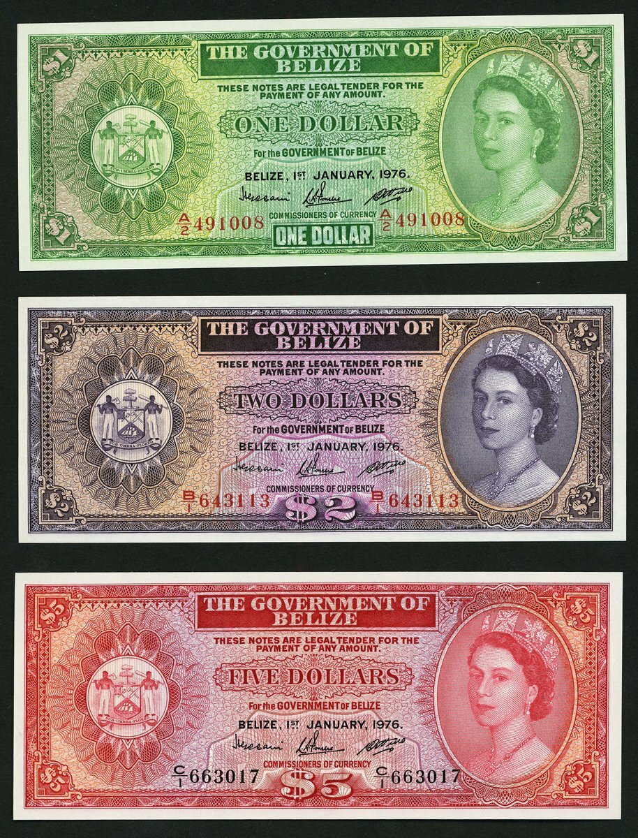 Government of Belize, $1, $2, $5, 1 January 1976, prefix A/2, B/1, C/1, (Pick 33c, 34c, 35b), uncirculated (3 notes)