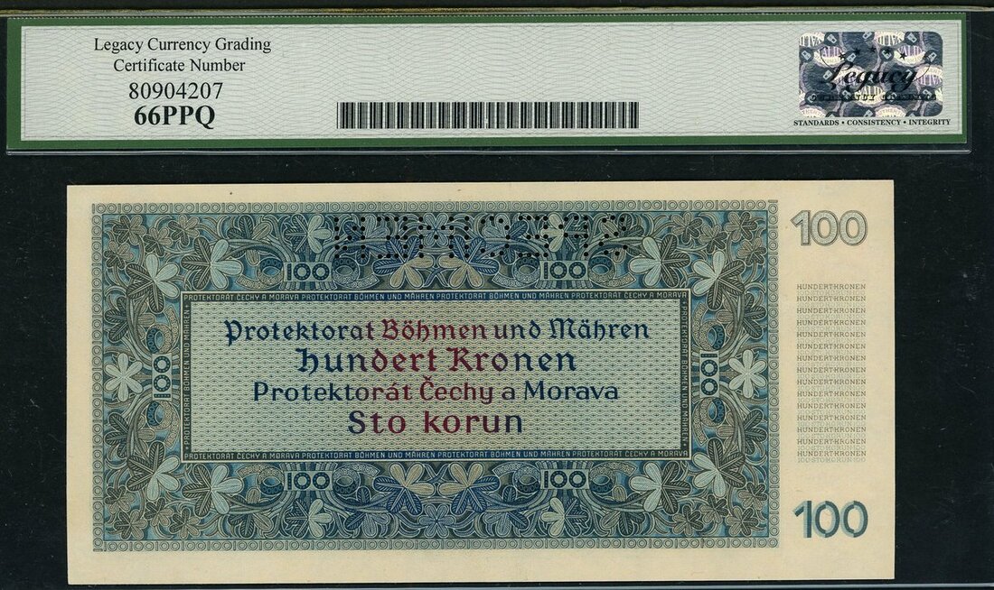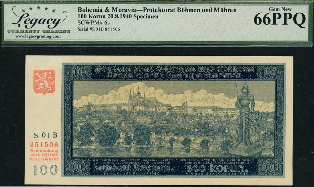 (x) Bohemia & Moravia - Protektorat Bohmen und Mahren, specimen 100 kronur 20.8.1940, (Pick 6s), Legacy 66PPQ Gem New