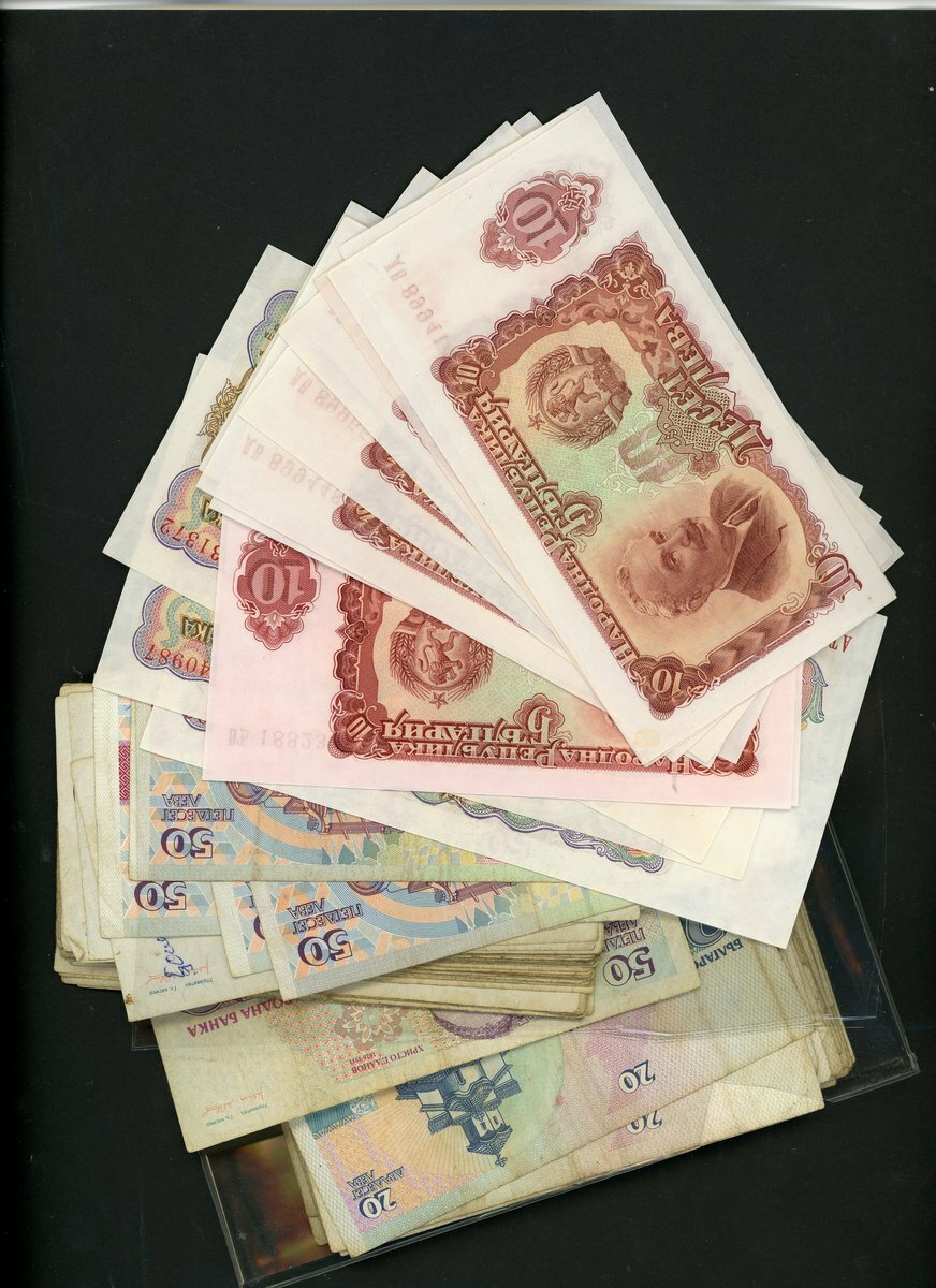 A group of Bulgaria, 20 leva (40), also including 50 leva 1992, (40) 50 leva 1951 (3), 10 leva 1951 (11),