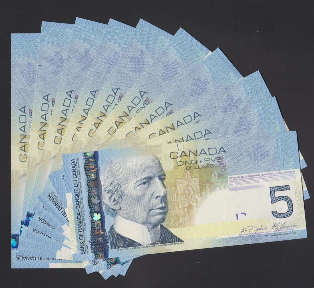 (x) Bank of Canada, 5 dollars (10), ND (2001-02), prefix APV, (Pick 101, TBB B364a), includes a consecutive run of 9, uncirculated (10 notes)