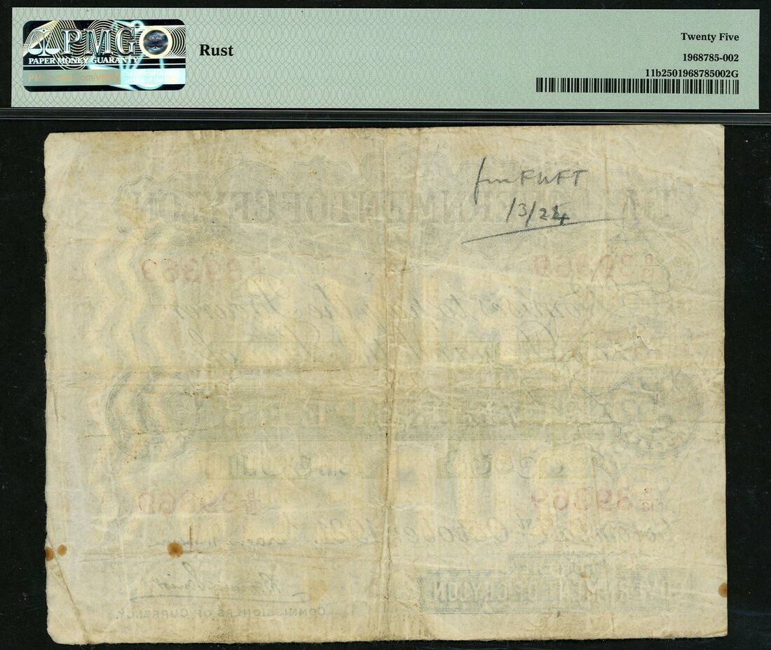 (Pick 11b, TBB B205n), in PMG holder, rust, 25 Very Fine, scarce