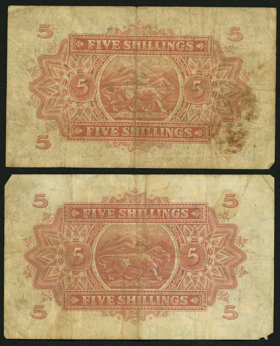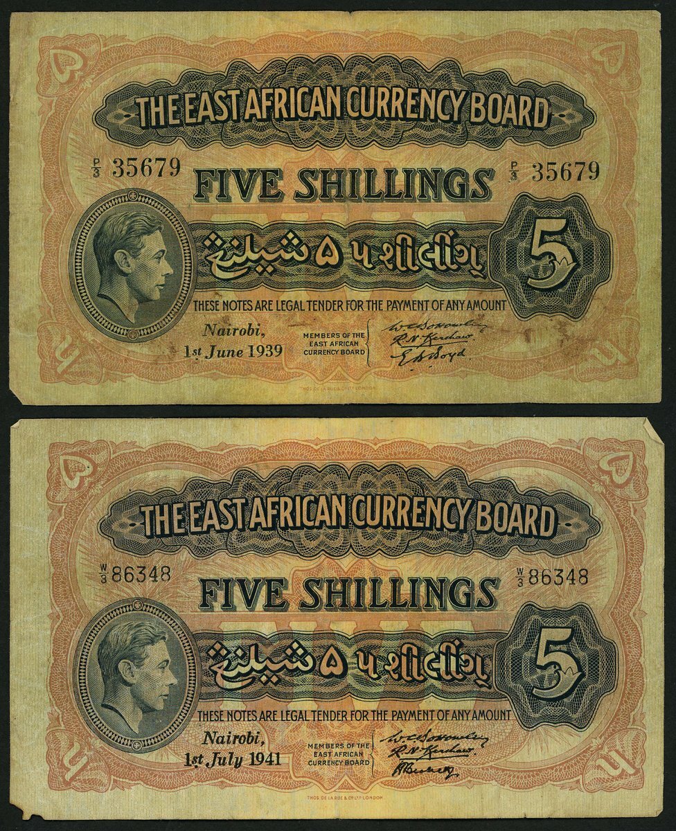East African Currency Board, 5 shillings (2), 1939, 1941, prefixes P/3, W/3, (Pick 28a, TBB B217c2, B217d), fine, 1939 scarce (2 notes)