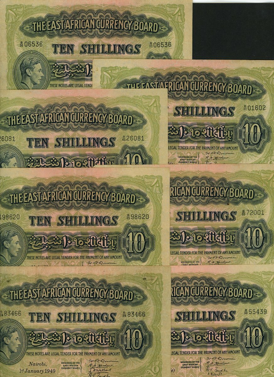 East African Currency Board, 10 shillings (7), 1949, 1950, (Pick 29b, TBB B218h, i), very fine (7 notes)
