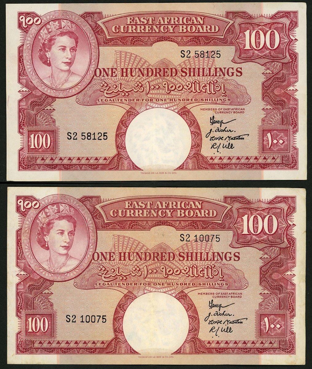 East African Currency Board, 100 shillings, Nairobi, ND (1958-60), prefix S2, (Pick 40a, TBB B230a), very fine (2 notes)