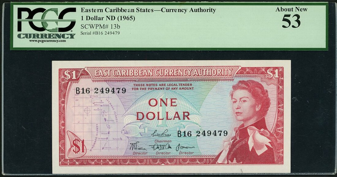 East Caribbean States, $1, ND (1965), (Pick 13b), in PCGS Currency holder 53 About New