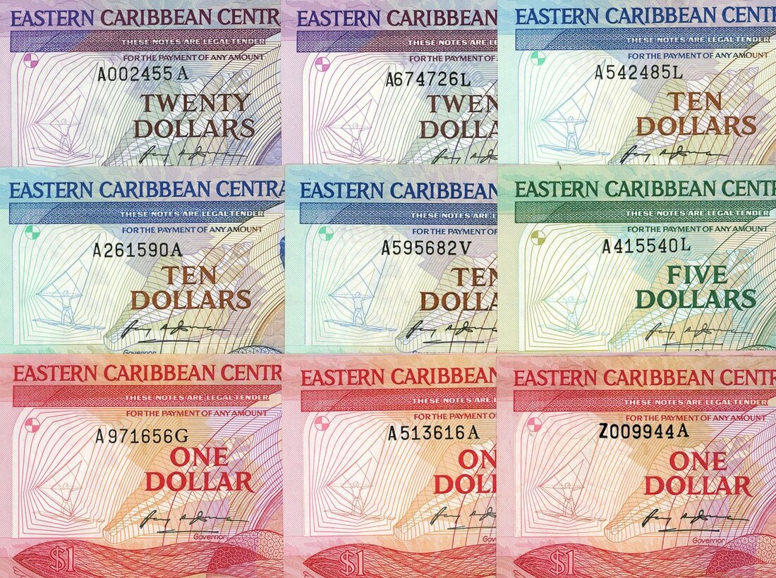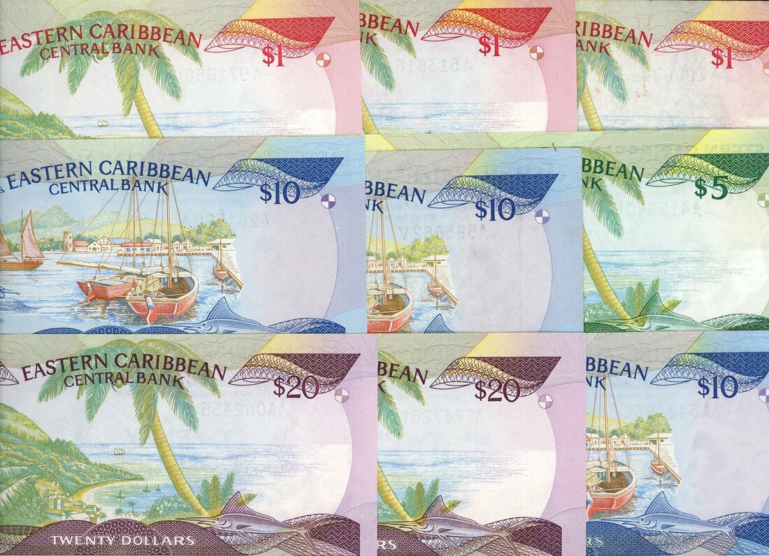 Eastern Caribbean Central Bank, a group of 1984-95, issues, including $1 (3), $5, $10 (2), $20 (2), (Pick 17a, g, 17*, 18l, 23a, l, v, 19a, l), very fine or better (9 notes)