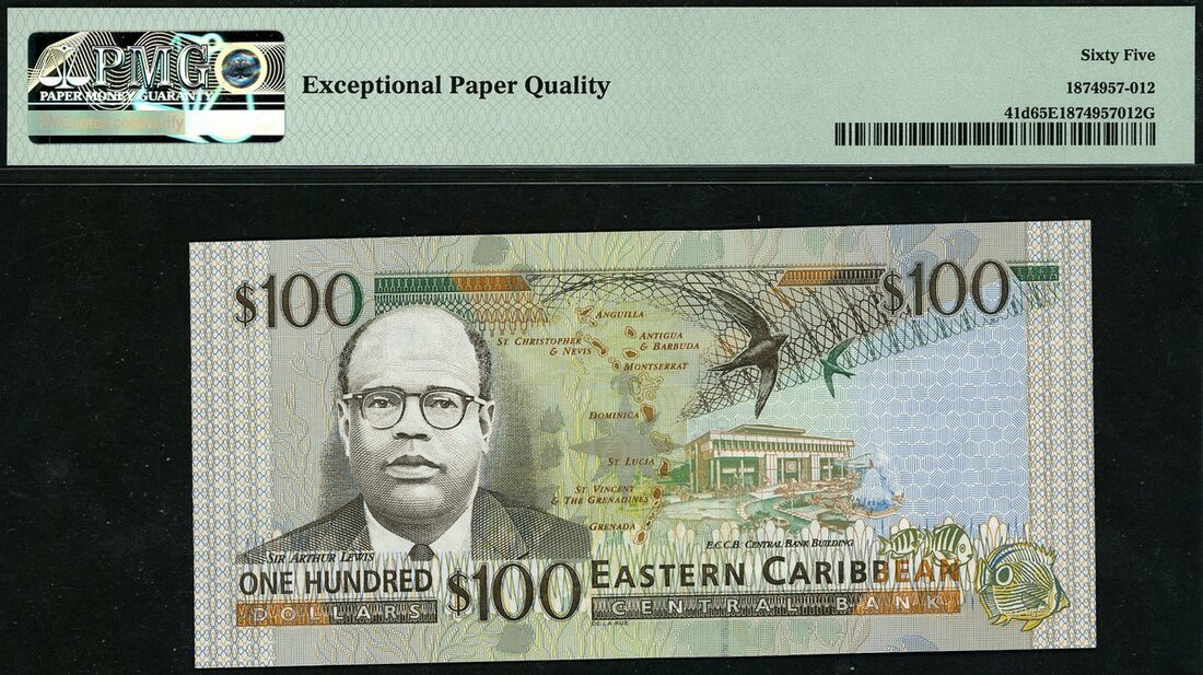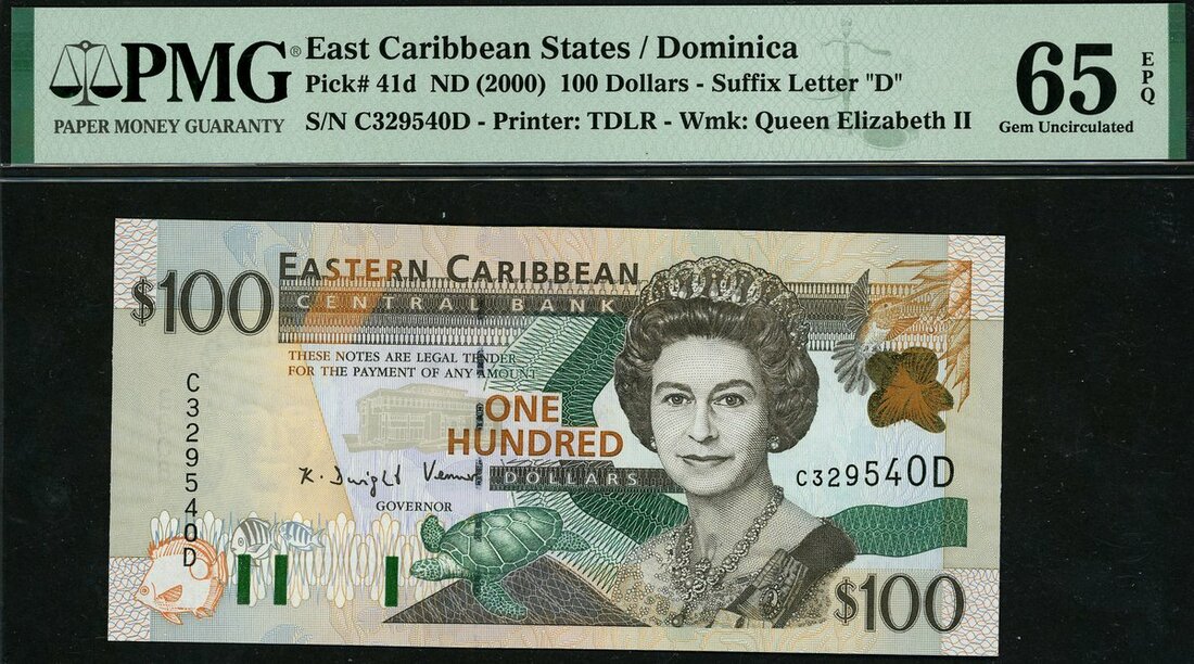 (x) Eastern Caribbean Central Bank, $100, Dominica, ND (2000), serial number C329540D, (Pick 41d, TBB B225d), in PMG holder 65 EPQ Gem Uncirculated