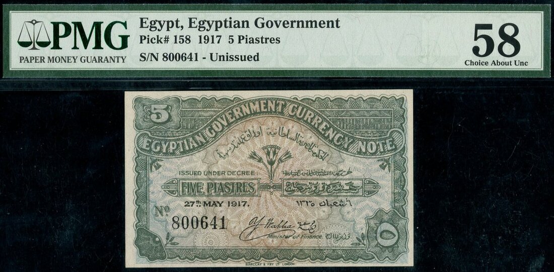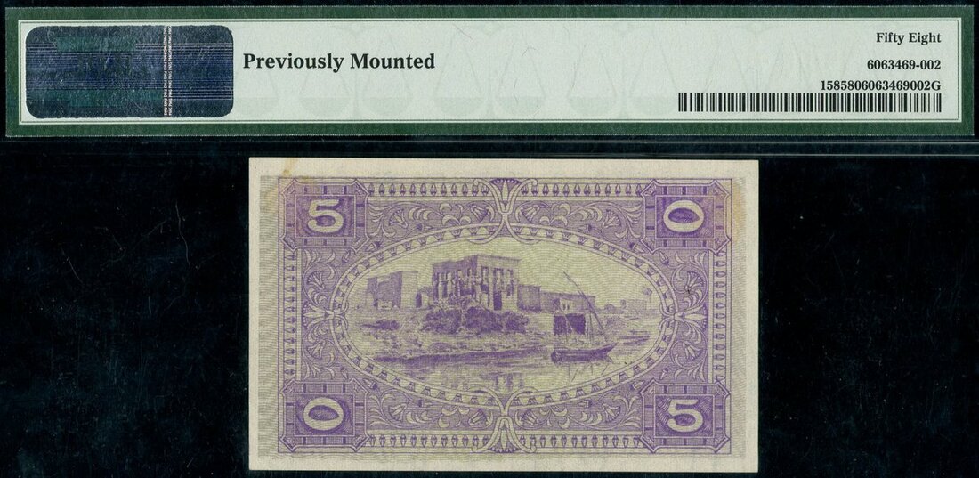 (Pick 158, Hanafy p.116), in PMG holder, previously mounted, 58 Choice About Unc, this type never issued due to an error with two different denominations shown in the text, scarce