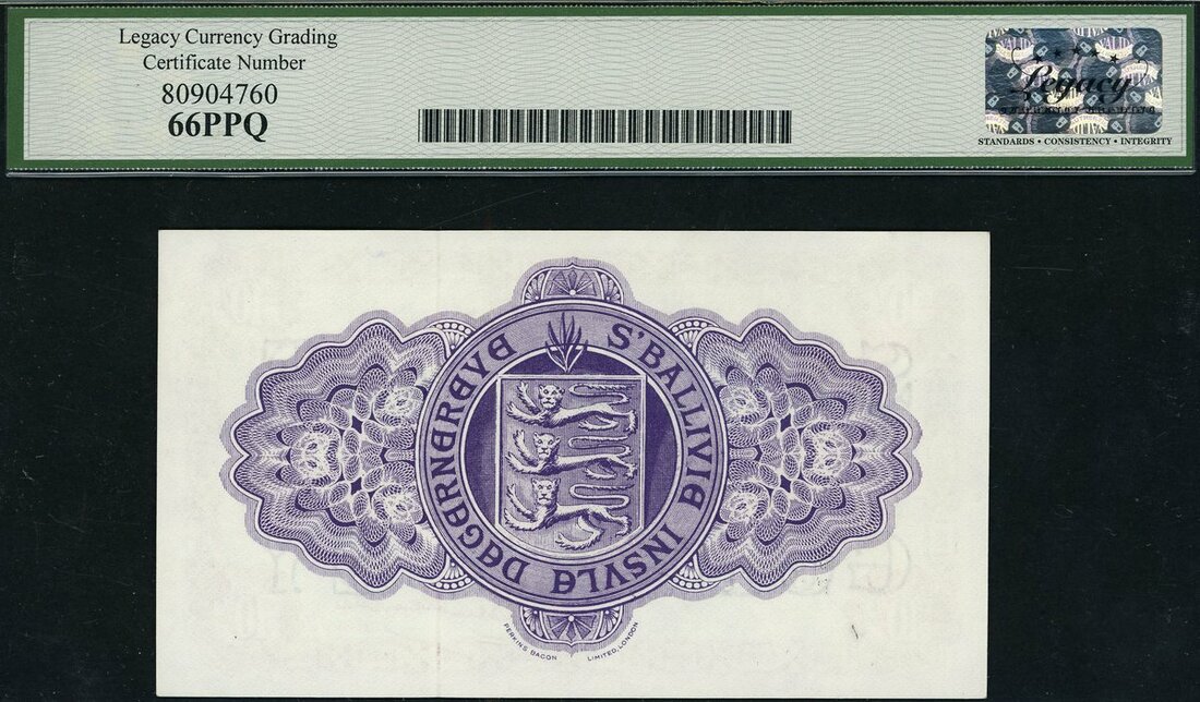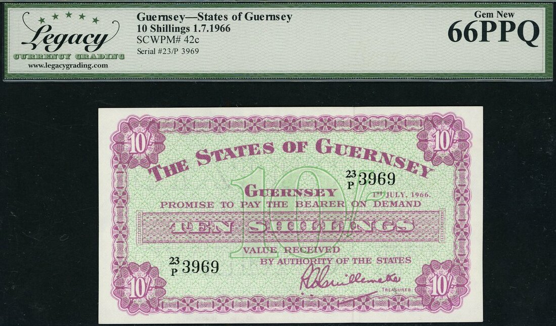 (x) States of Guernsey, 10 shillings, 1966, prefix 23/P, lilac and green, Guillemette signature