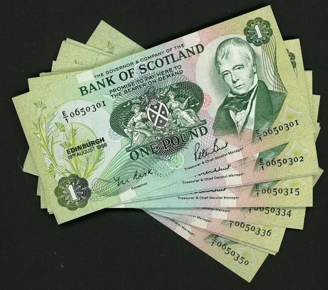Bank of Scotland, consecutive £1 (50), 1988, serial number E/1 0650301-50, (PMS BA113g), uncirculated (From a private collection of Sir Thomas Risk) (50 notes)