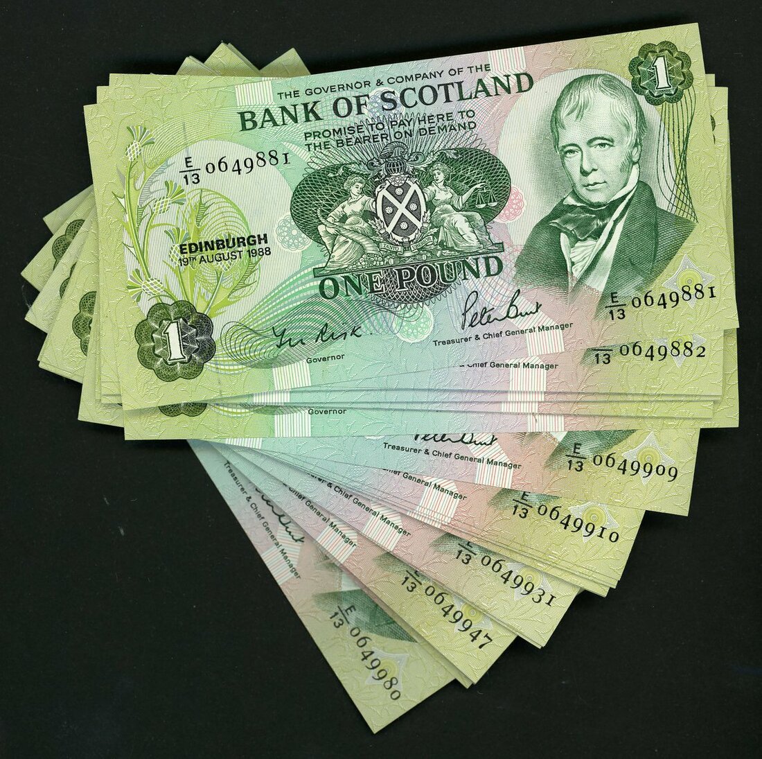 Bank of Scotland, £1 (91), 1988, serial numbers E/13 0649881-0649980, signature Sir Thomas Risk.