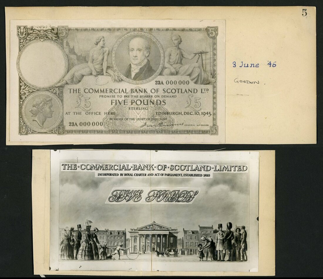 The Commercial Bank of Scotland, Photographic Proof (Obverse and Reverse) £5, 10 December 1945, (2 notes)