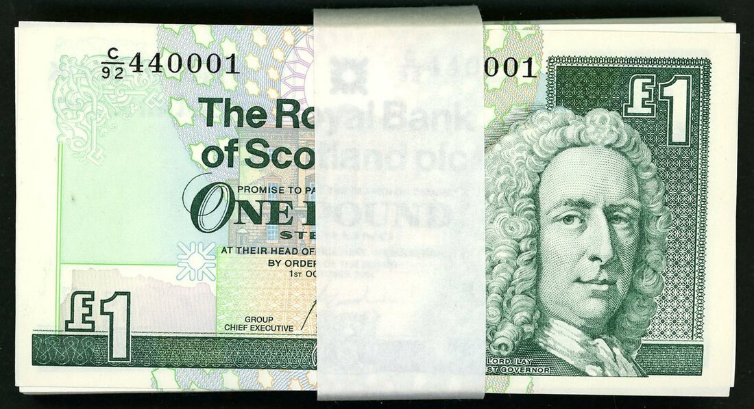 Royal Bank of Scotland Plc, consecutive bundle of £1 (100), 2001, serial number C/92 440001-100, (PMS RB92b, Pick 351e), as issued in bundle, some with very minor handling (100 notes)