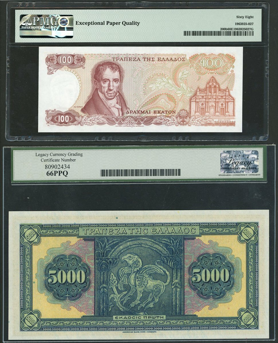 (Pick 103a, 200b), in Legacy holder 66PPQ and PMG 68EPQ, both excellent grades for types (2)
