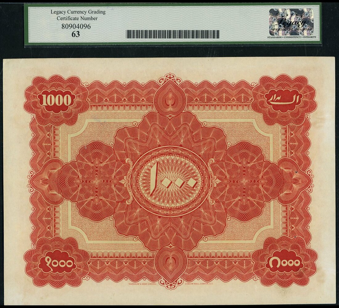 (Pick S267, Razack-Jhunjhunwalla 7.12.1), in Legacy holder 63 Choice New. This type a most handsome Waterlow engraving and becoming quite rare. A lovely example