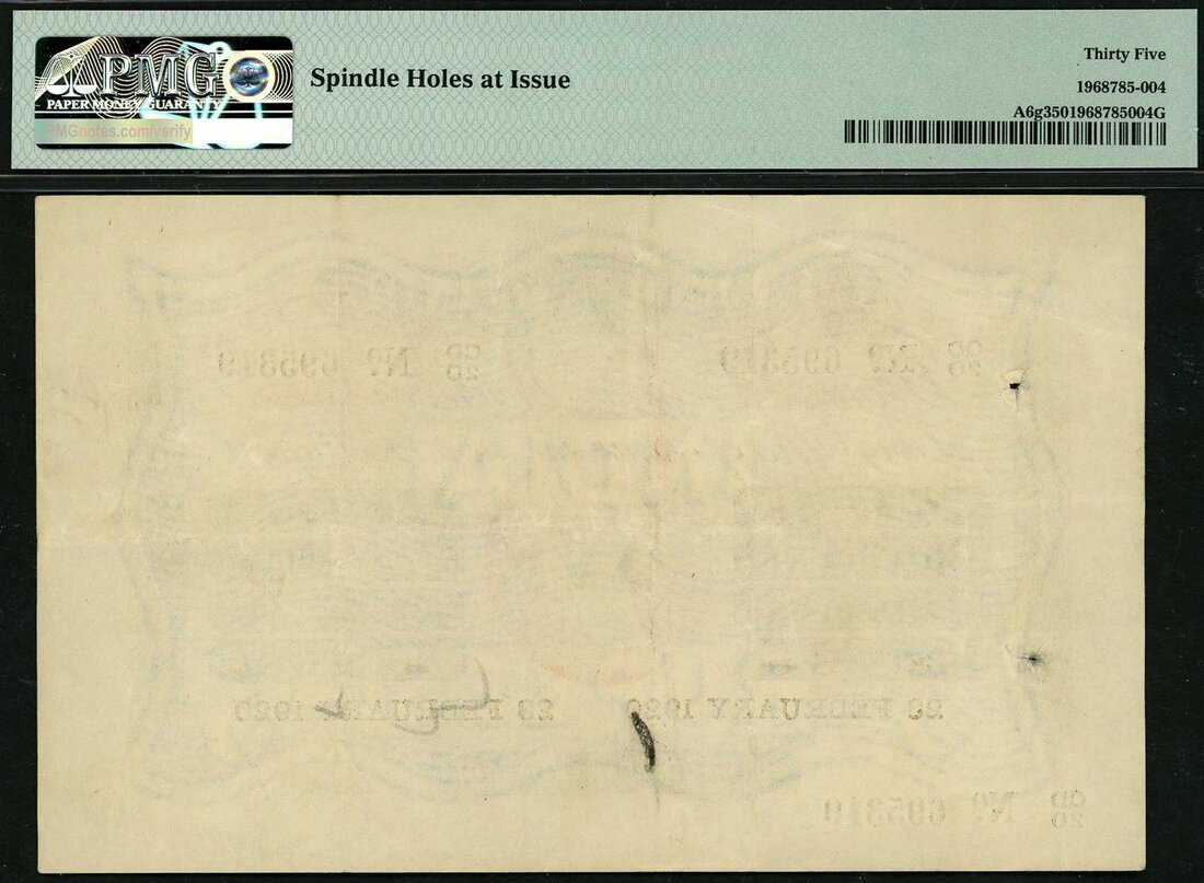 (Pick A6, TBB B132s1, Razack-Jhunjhunwalla 2A.1.6.1), in PMG holder, spindle holes at issue, 35 Choice Very Fine