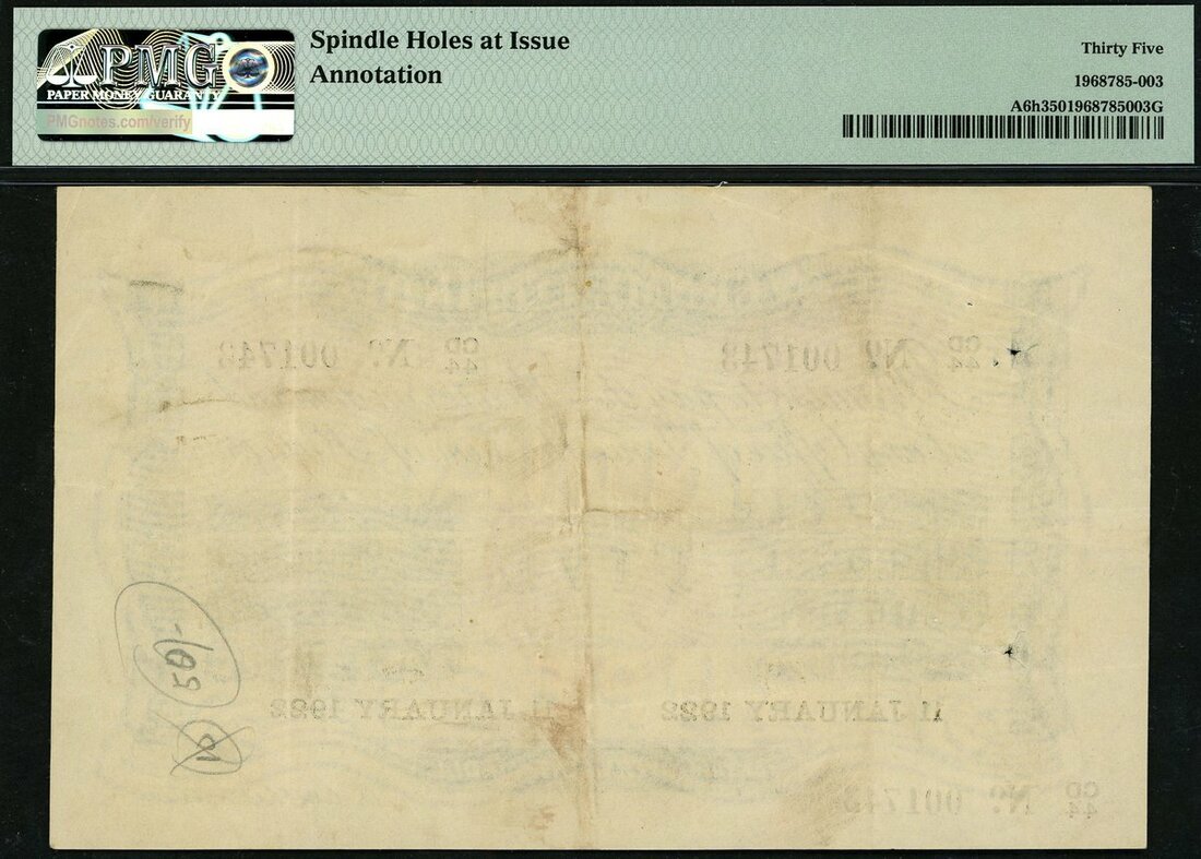 (Pick A6, TBB B132s2, Razack-Jhunjhunwalla 2A.1.6.2), in PMG holder, spindle holes at issue, annotation, 35 Choice Very Fine