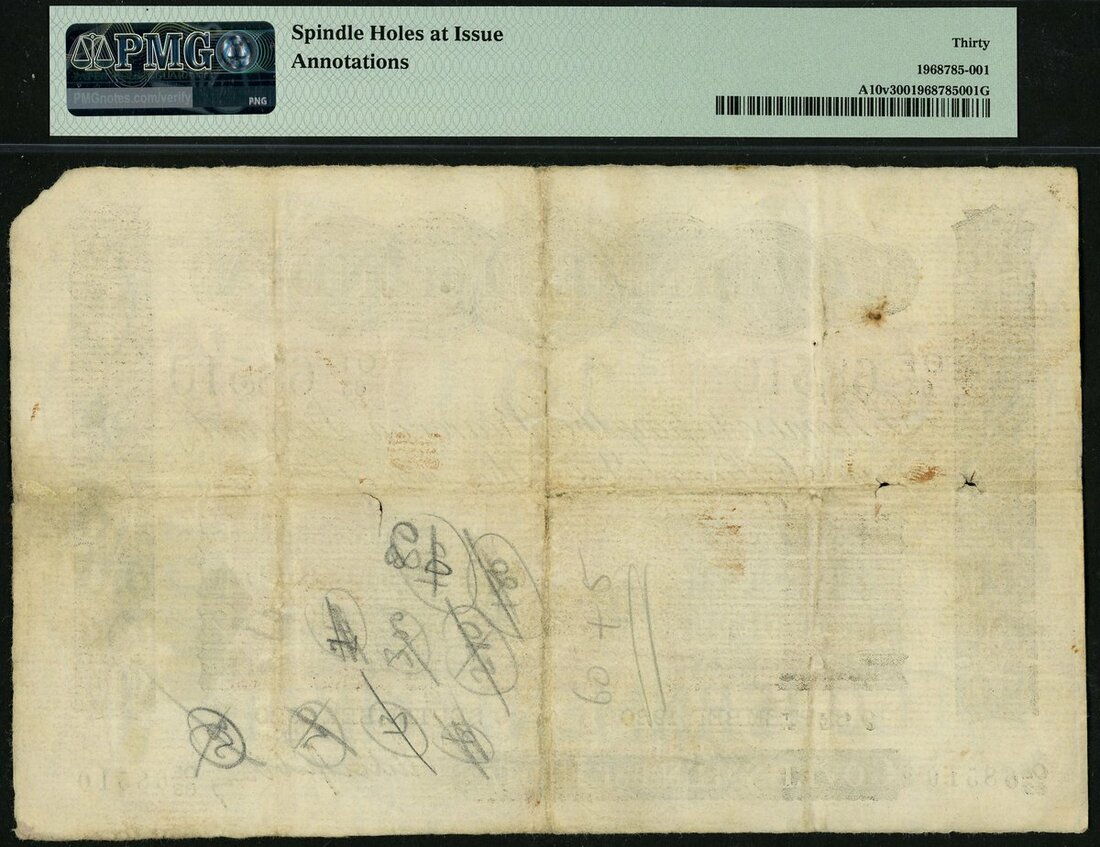 (Pick A10v, TBB B133s.1, Razack-Jhunjhunwalla 2A.2.4.1), in PMG holder, spindle holes at issue, annotations, 30 Very Fine, scarce
